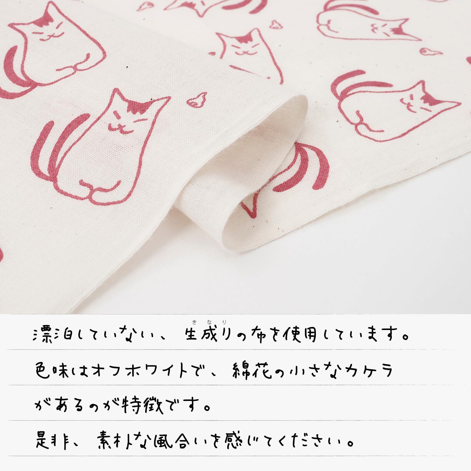 手ぬぐい 妖怪 猫また 無漂泊 生成 約35cm×90cm 速乾 日本製 1枚 オールドローズ