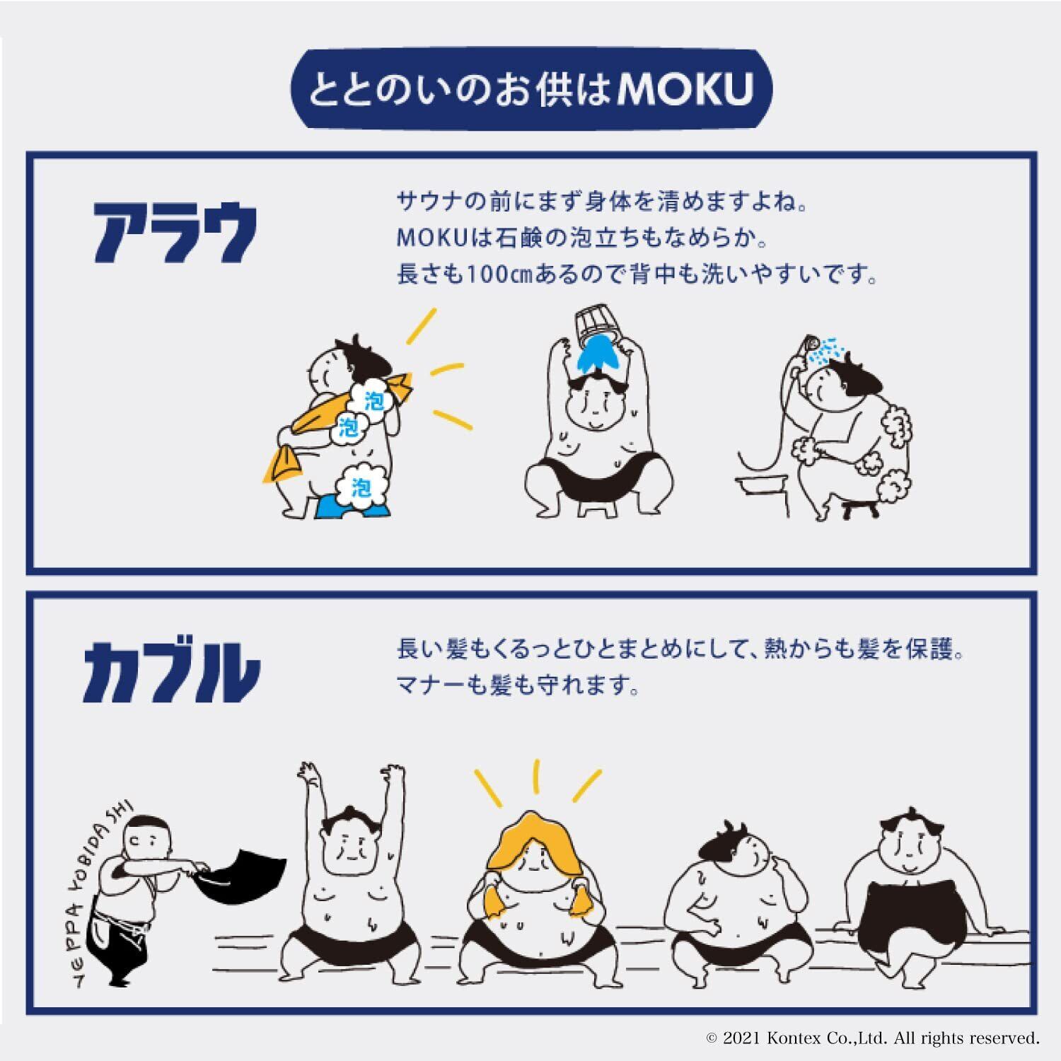 【サウナ好きのマストアイテム!サウナMOKU】 サウナMOKUとは、「洗う」「巻く」「拭く」「絞る」というサウナでも4つの使用方法に最も適した、浴室で最も頼りになる今治の国産タオルです。