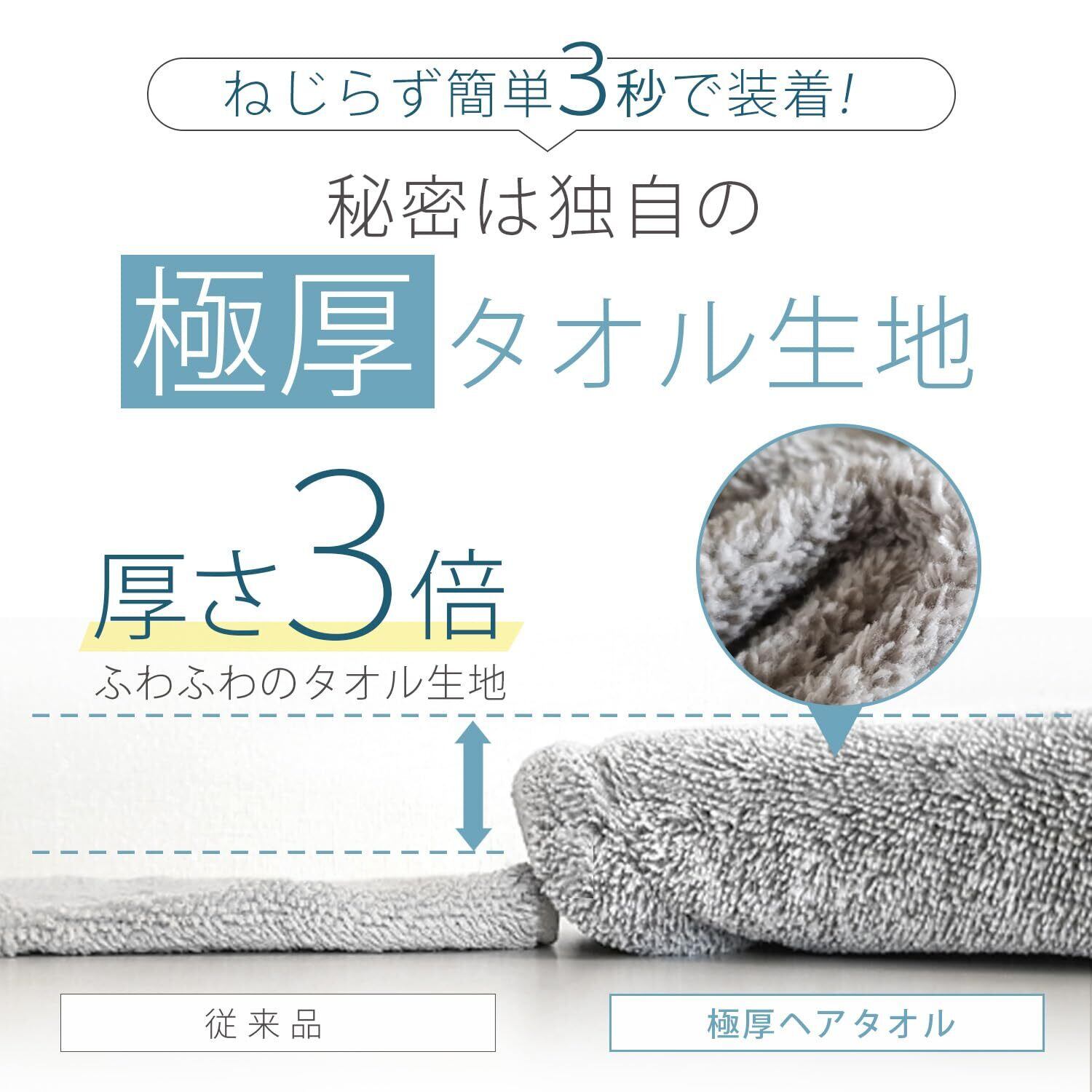 【数量限定】仕上げのドライヤー時間を短縮する3秒で装着できる極厚ヘアタオル 時短 速乾 水分吸収 髪 ドライ 髪の毛 吸水 セミロング ロングヘア用 ながら時間