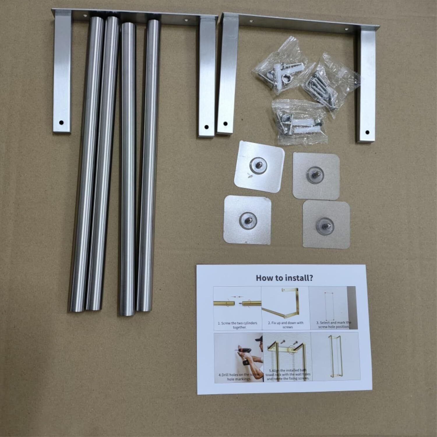 【取り付け簡単】このバスタオル収納ラック 壁取り付けは組み立てが簡単で、簡単な指示に従うだけで数分で取り付けることができ、あらゆるサイズのタオル、特に大きなバスタオルに適しています。すべての金具(ネジが全部アクセサリーパッケージに入る)はパッケージに含まれており、説明書に従って簡単に取り付けることができます。