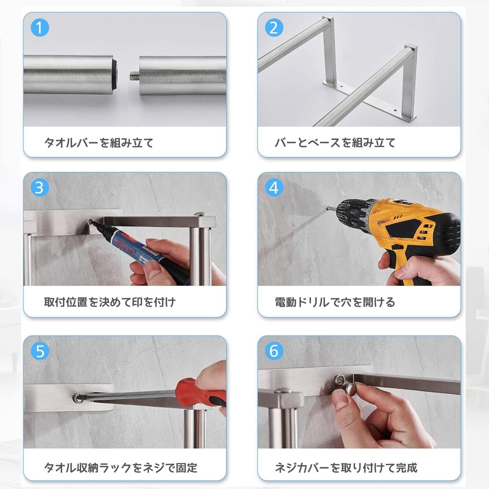 【頑丈で耐久性】壁に取り付けられたタオルラックはステンレス鋼で作られており、錆びません。 壁掛けパンチングにより、より高い安定性を実現できます。