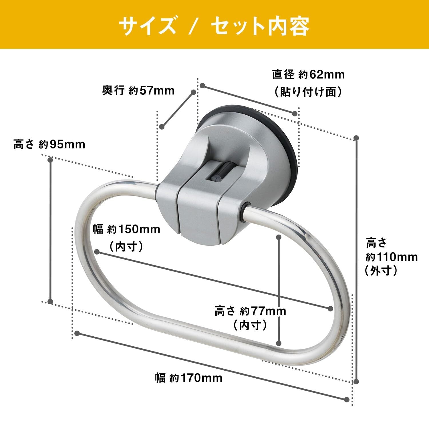 レック タオル掛け (ジェル吸盤) 耐荷重2kg サビにくいステンレスリング