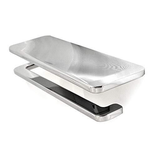カワジュン社のデザインアクセサリーシリーズ。メガネなどを置ける棚付です。 材質:亜鉛合金 付属品:+なべタッピンねじφ4×35(SUS)2本 仕上:クローム 耐荷重:49N(5kgf)