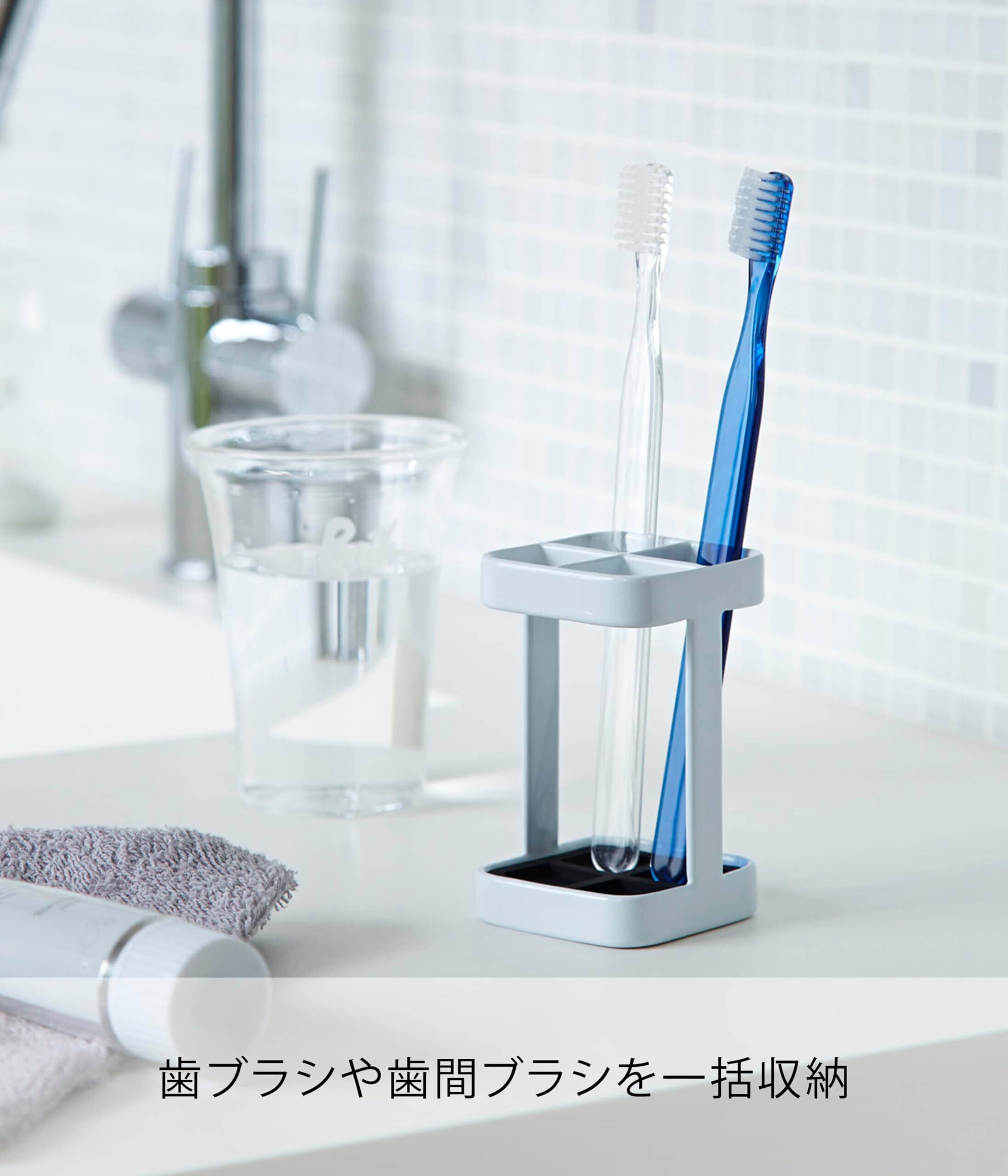 歯ブラシ・歯間ブラシをスリムに一括収納。マットが取り外せるのでお手入れも簡単。