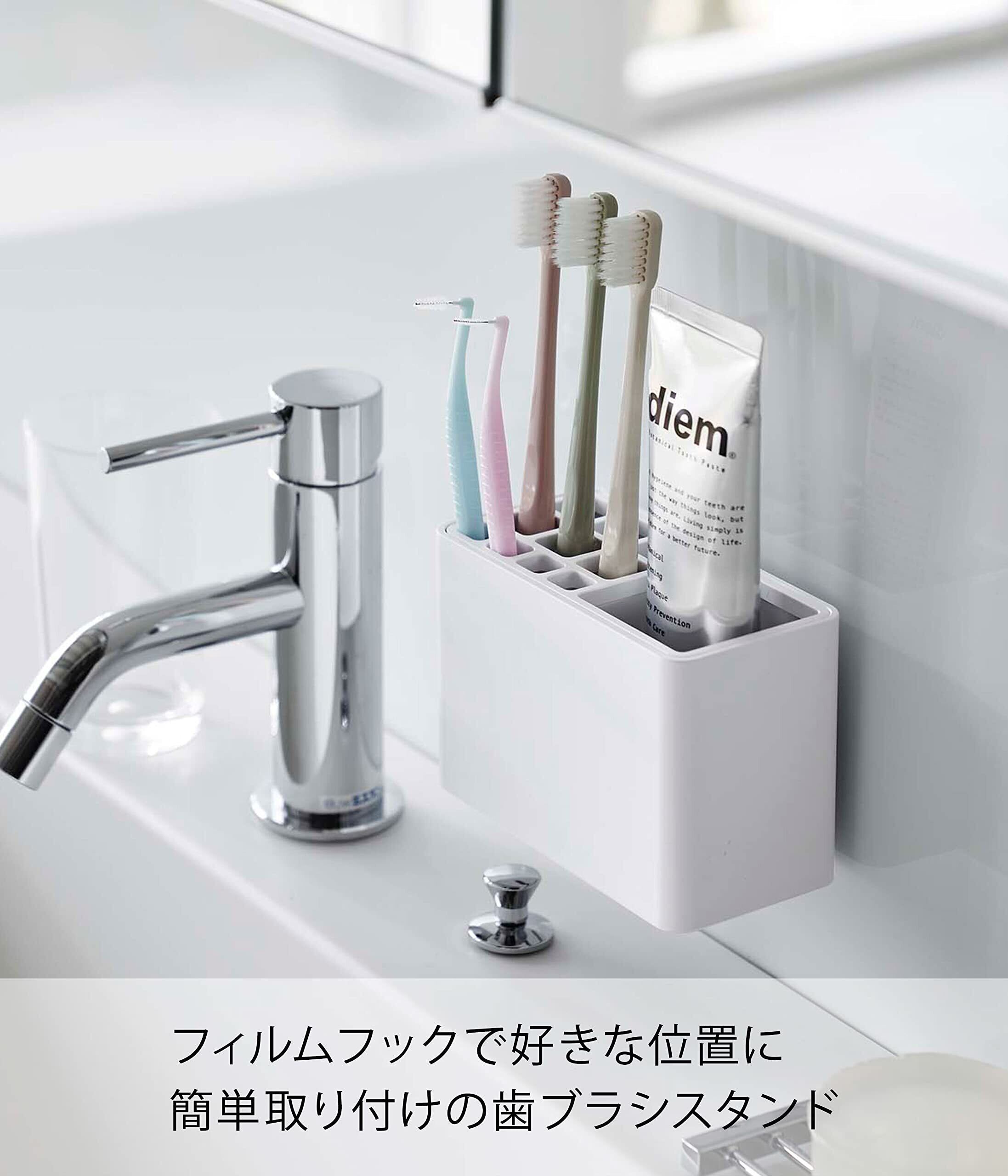 山崎実業(Yamazaki) フィルムフック 歯ブラシスタンド ホワイト 約W12×D6.5×H8cm ミスト MIST 歯ブラシ 一括収納 5959