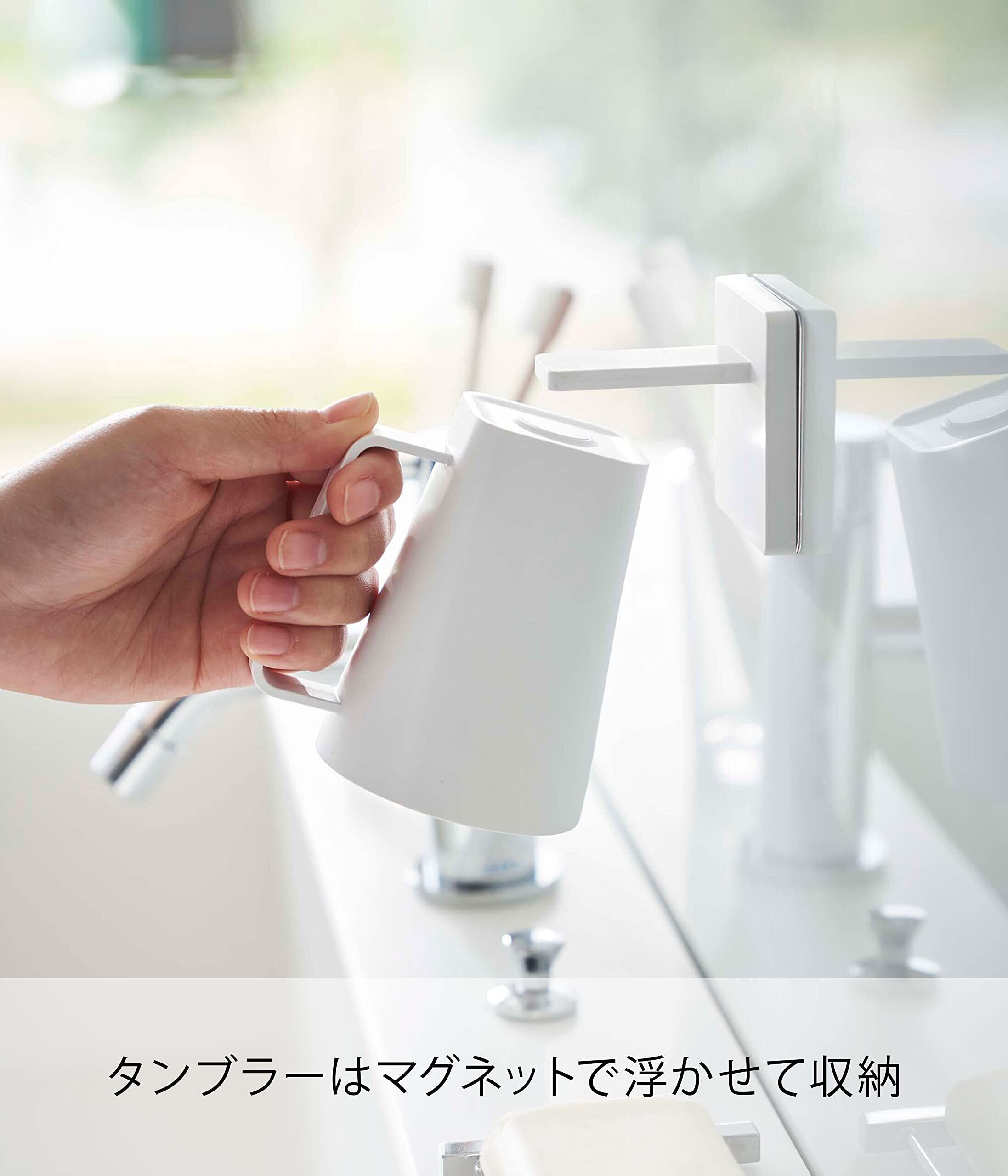 【在庫セール】山崎実業(Yamazaki) フィルムフック マグネットタンブラー ホワイト 収納時:約W7×D10×H11.5cm ミスト MIST 歯磨きコップ 収納 5957