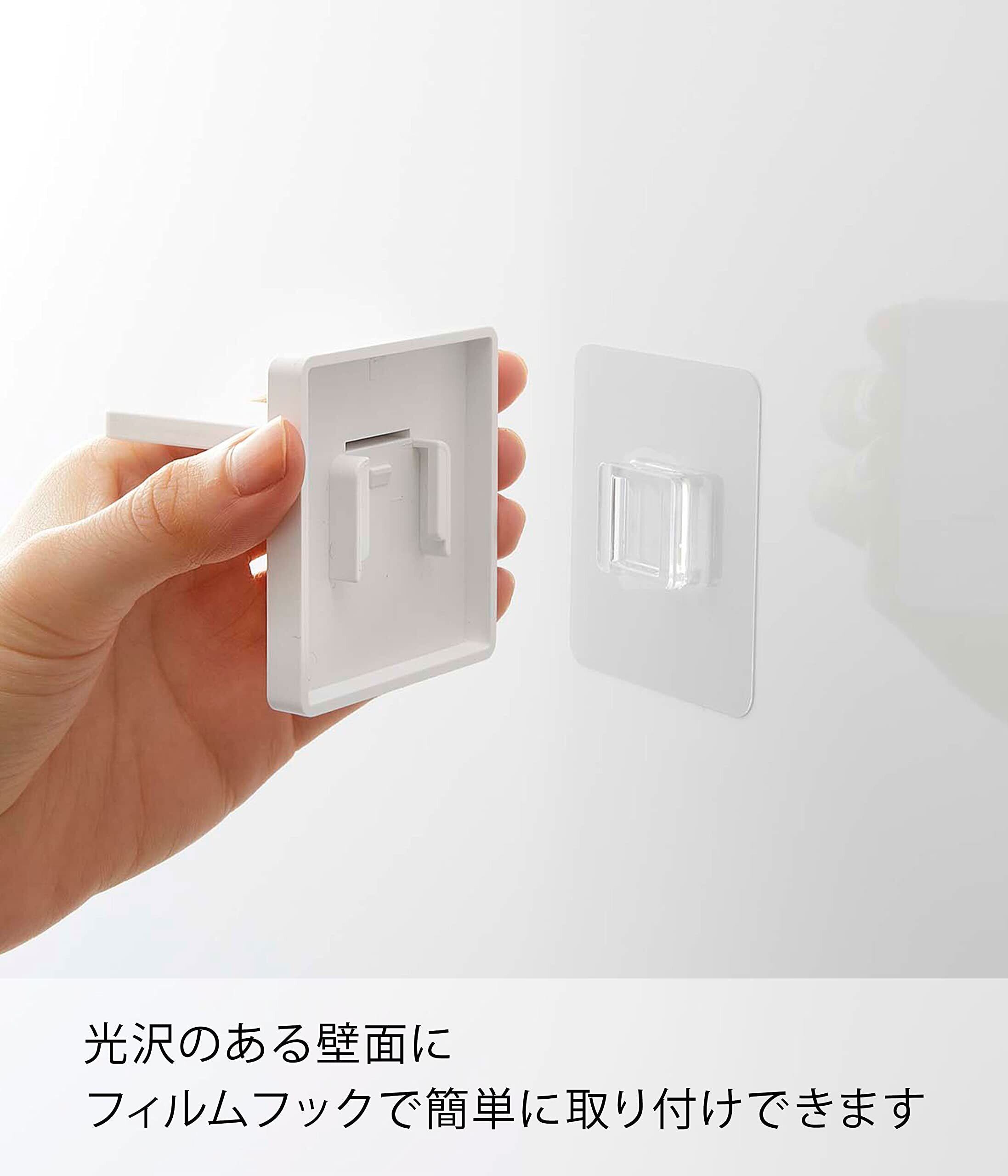 光沢のある壁面にフィルムフックで簡単取り付け。