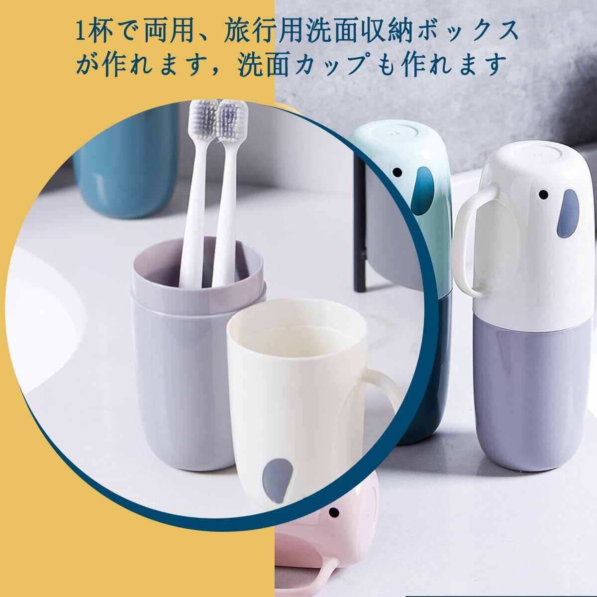 旅行用の特別な歯ブラシホルダー、この旅行用歯ブラシケース、2セクションデザイン、歯ブラシを清潔に保ちます。丸い角のデザインで、傷のある肌やバッグの中のアイテムはありません。アタッチメントリングで接続されており、2つのカップとして分離できます。