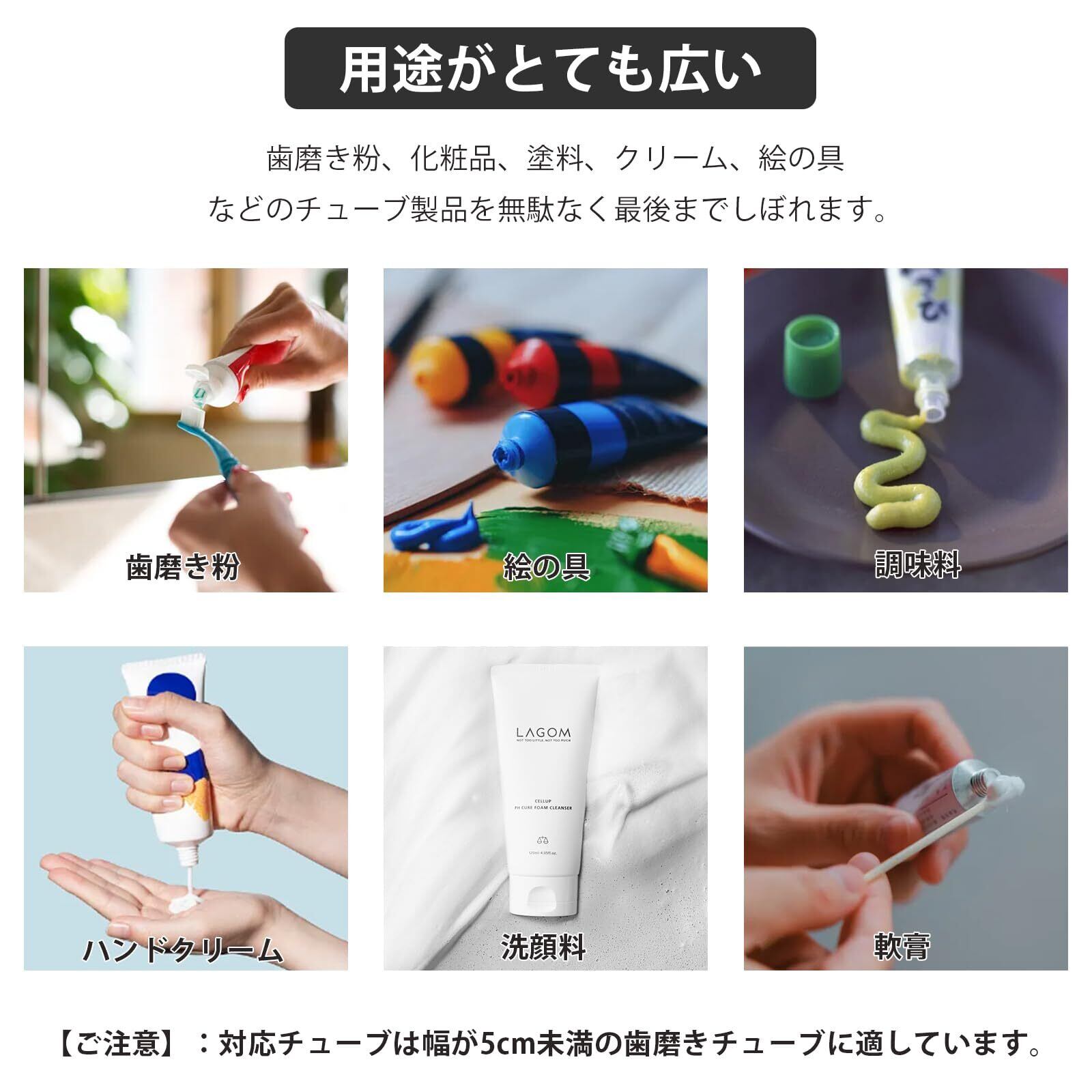 【多機能&無駄の削減 】チューブの中身を無駄なくしぼり出せます。歯磨き粉はもちろん、軟膏、カラー剤、絵の具、接着剤、調味料、化粧品、整髪料などいろんなチューブ絞りに活躍できます。洗面台周りやバスルームにそのまま立てておけます。
