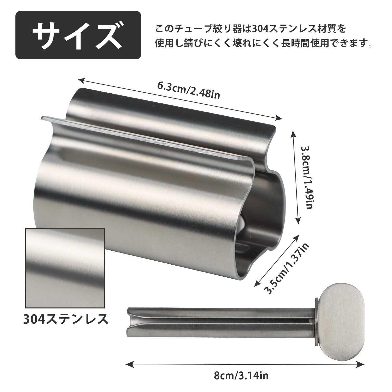 【仕様&耐久性】チューブ絞り器2個入り、サイズ:約8×3.3cm、重さ:88g、カラー:シルバー ; このチューブ絞り器は304ステンレス材質を使用し、再利用可能し、プラスチック製によりも錆びにくく、壊れにくく、水回りでも長時間使用できます。