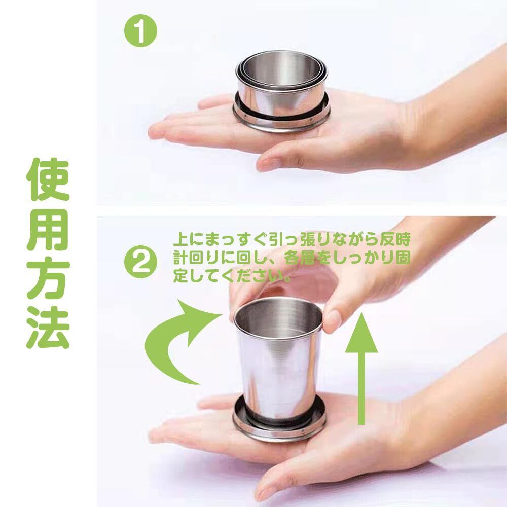 折りたたみ ステンレス 250ml 伸縮収納式コップ 盃 蓋付き 伸縮カップ ステンレス製 折り畳み 携帯便利 軽量 携帯コップ キーホルダー付き 旅行 ハイキング アウトドア キャンプ用