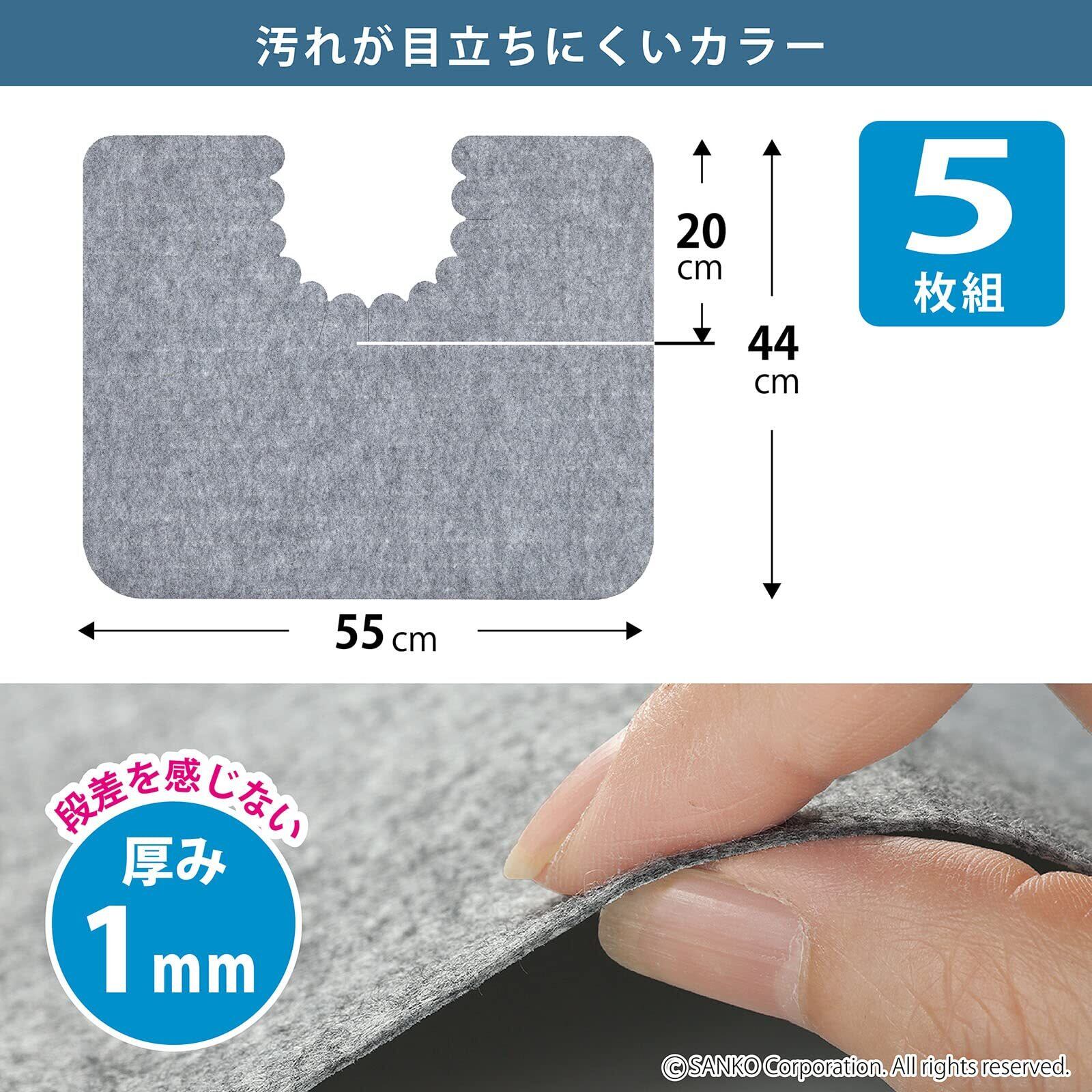 【新春セール】サンコー ずれない トイレマット 男性用小便器対応 床汚れ防止マット グレー 5枚入 おくだけ吸着 日本製 KH-16 巾55×奥行44cm(厚み1mm)
