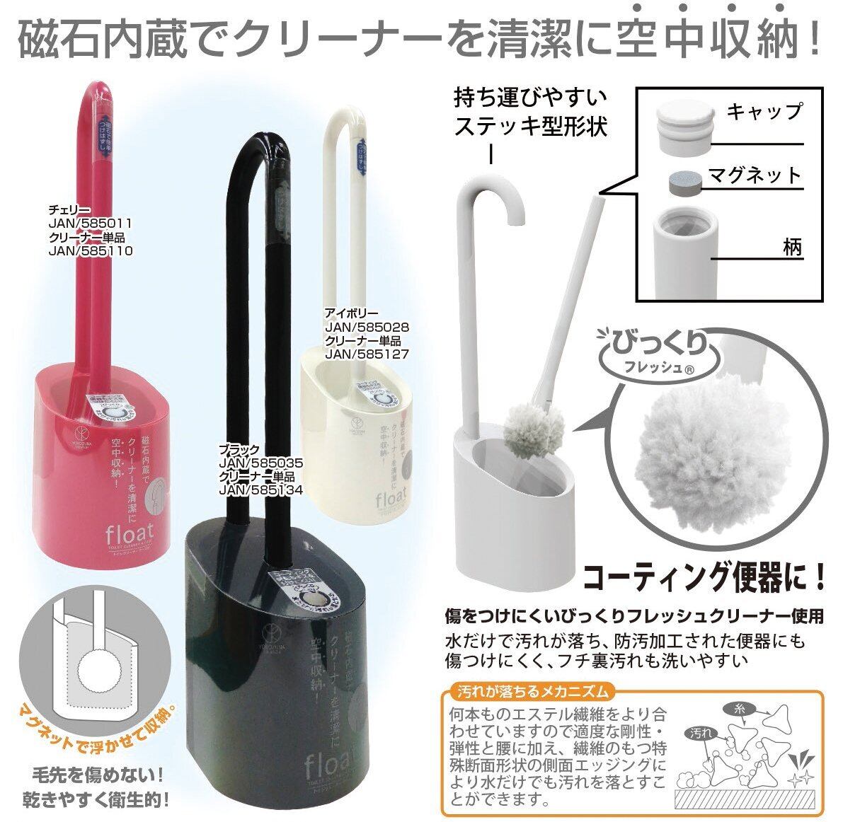 ○磁石内蔵でブラシを簡単つけはずし ○持ち運びしやすいステッキ型持ち手 ○水がハネにくいウェーブ毛 ○コーティング便器にもキズをつけにくいびっくりフレッシュクリーナー使用