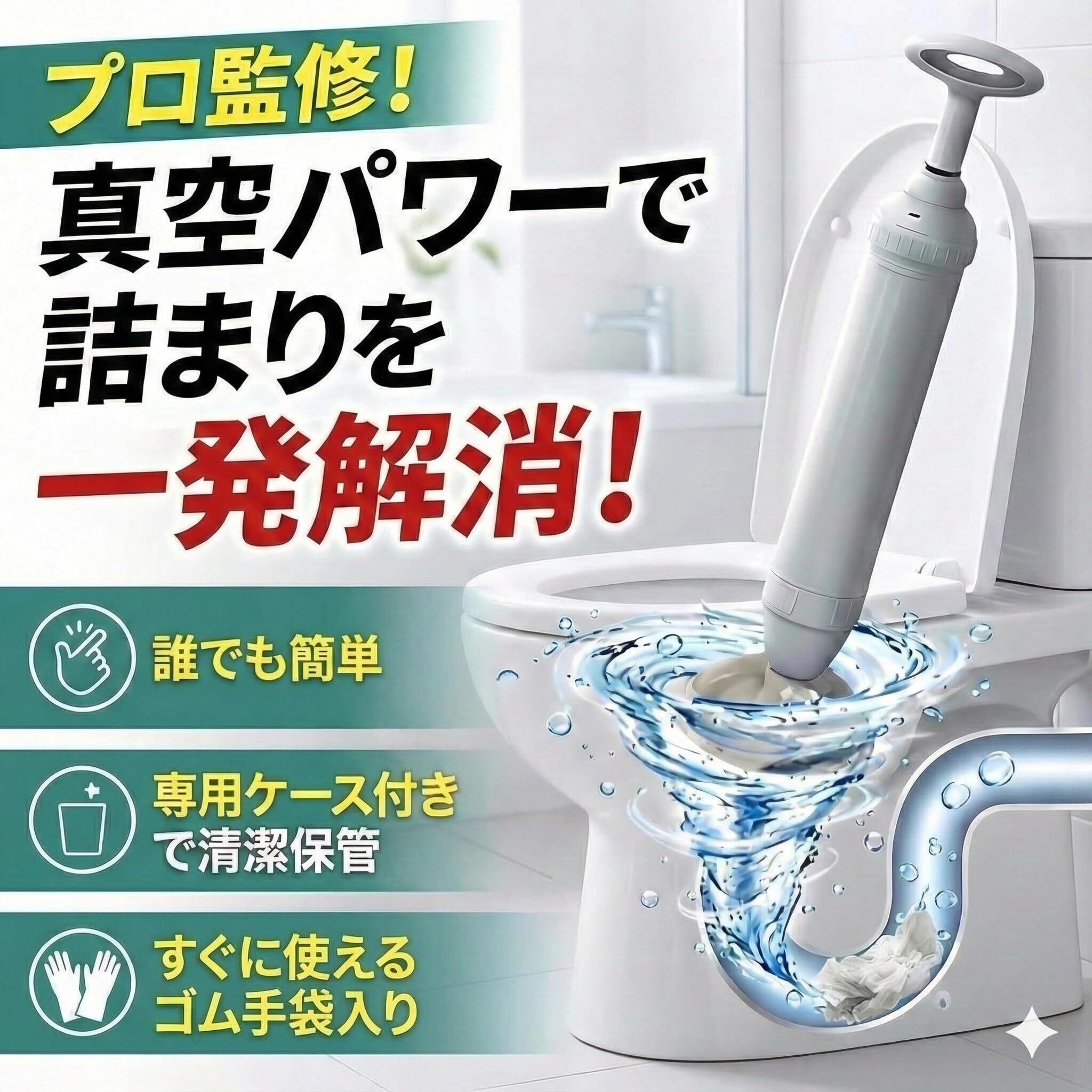 【強力吸引】真空ポンプ式パイプクリーナーで、トイレの詰まりを効果的に解消します