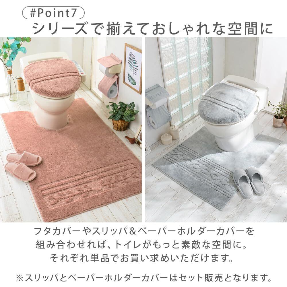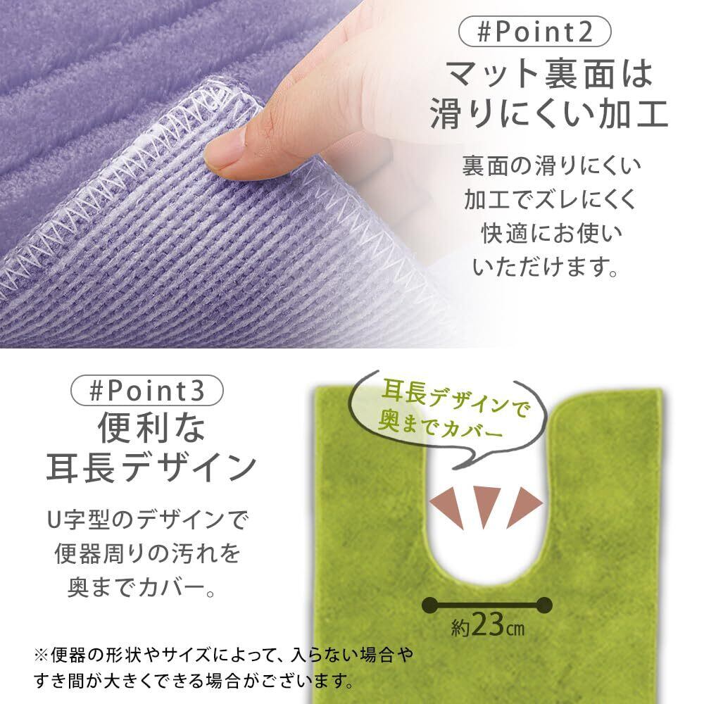 ベルーナ(BELLUNA) トイレマット ロング 洗える おしゃれ トイレカバー スリッパ&ペーパーホルダー フタカバー 耳長 ワイド オリーブ柄 滑り止め 抗菌防臭 ふわふわ へたりにくい 単品 (543931-058)