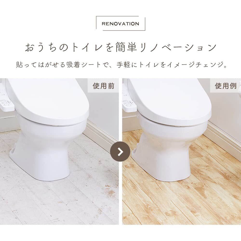 床全面の汚れを防水シートでガード!貼って剥がせる吸着シートで手軽にトイレをイメージチェンジ! のりを使っていないので、キレイに剥がせて貼り直しもOK!薄型シートなので、レイアウトに沿ってハサミで自在にカットできます。 安全警告 【使用上の注意】 ●本製品は、床暖房にはご使用頂けません。 ●本製品を貼る床面の状態(経年劣化など)によっては、床を傷める場合があります。 ●本製品は、平滑な床面に密着します。 凹凸がある床面では粘着力が弱くなる可能性がありますので、ご使用はお避けください。 ※詳細は「貼ることができる面」の表をご確認ください。 ●床面の水分や汚れなどを必ずよく拭き取ってから貼り付けてください。 ※床面が汚れた状態、濡れた状態では貼り付けないでください。 ●製品の臭いが気になる時は、1日風通しのよいところで陰干ししてください。 ●本来の目的以外の用途でご使用にならないでください。 ●直射日光の当たる場所や高温多湿になる環境下でのご使用はお避けください。 ●マットなどの滑り止め加工に含まれる老化防止剤や床材塗料、防腐剤、防虫剤等の薬剤によっては、変質、変退色の恐れがありますのでご注意ください。 ●本製品の上で物を引きずるなど、過度の負荷、荷重がかからないようご注意ください。キズや圧痕の原因となります。 ●塩化ビニル樹脂の耐熱温度は約60℃です。火が直接あたるところや表面が高温になるところでは絶対に使用しないでください。 ●ご使用の際は裏面の保護フィルムを剥がしてご使用ください。 ●汚れの軽いうちは濡れ雑巾で拭き取りしてください。汚れがひどくなった場合は、台所の中性洗剤を染み込ませた布巾で軽く拭き取ってください。 汚れを落とした後は十分に洗剤を落としてください。 ●裏面の吸着シートの汚れは流水で落としてください。濡れた状態では使用しないでください。 ●本製品に水が付いた時はすぐに拭き取ってください。カビやぬめりの原因となります。また濡れたままの状態で使用すると、滑って思わぬ事故につながる恐れがあります。 ●本製品および包材を廃棄される際は、お住まいの自治体の取り決めに基づいた処理を行ってください。