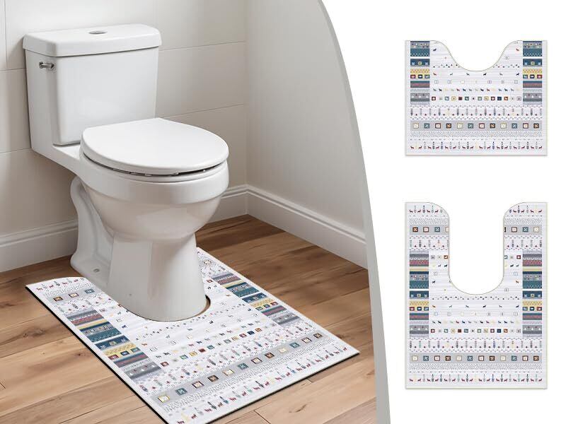【商品仕様】3層構造:表面/ポリエステル100%、中材/厚い不織布、裏面/不織布+TPR滑り止めデザイン。トイレマットには抗菌・防臭加工が施されているため、毎日トイレというプライベートな空間の清潔さと快適さを保つことができます。