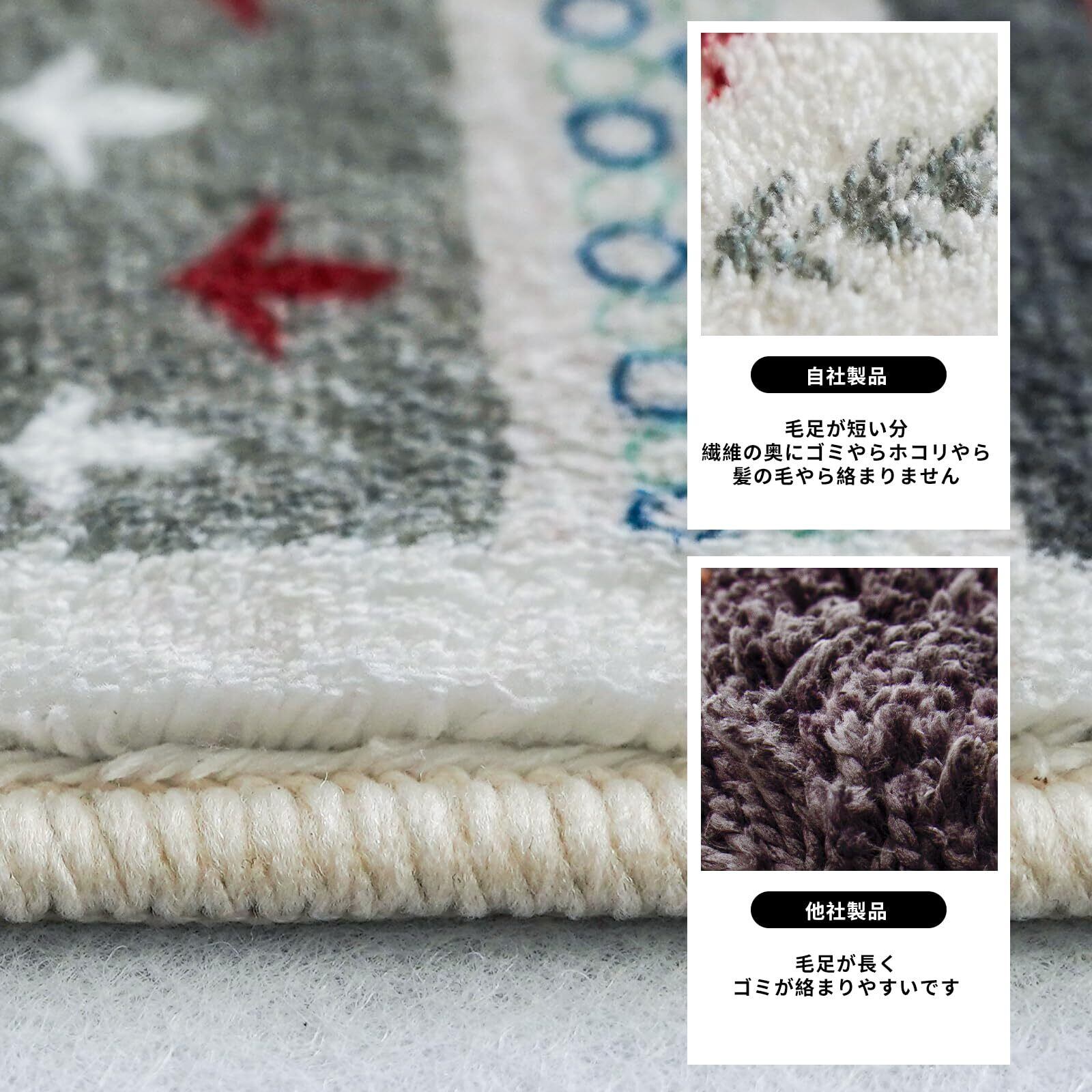 【滑り止め付き・耐久性よい】トイレマットの裏面には不織布+TPR滑り止め加工が施されているため、ずれにくく、滑るイライラを解消します。小さなお子さまやお年寄りがいる場合でも、滑って転ばないか心配がありません。丁寧に作られた縁とほつれにくい毛糸を基づいて、耐久性はいいです。サイドもロック加工で丁寧に仕上げています。