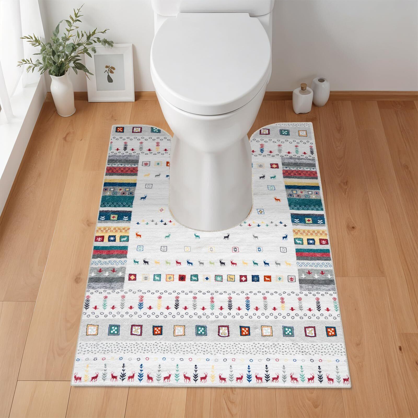 【数量限定】トイレマット ロング 洗える おしゃれ 耳長 トイレ マット 滑り止め 抗菌防臭 ふわふわ レギュラー toilet mat ふかふか 北欧 トイレ足元マット かわいい U型 踏み心地良い(モロッコ, 90×60cm)