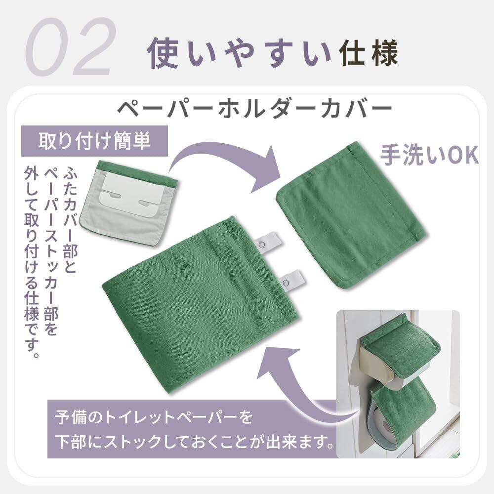 ベルーナ(BELLUNA) トイレマット ロング 洗える おしゃれ トイレカバー フタカバー スリッパ&ペーパーホルダー 耳長 ワイド マイクロ素材 滑り止め 抗菌防臭 ふわふわ へたりにくい 単品 (283970-508)