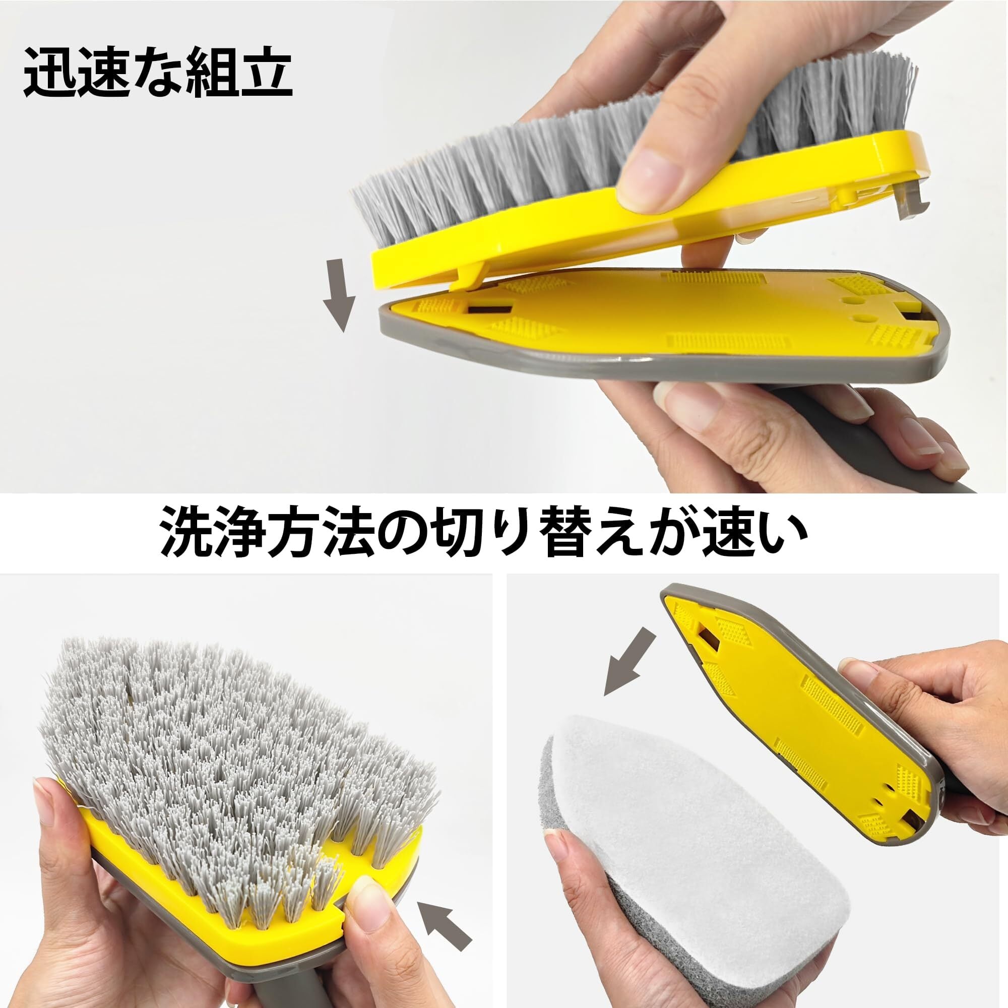4つの交換可能なブラシヘッド:玄関タイルブラシには4つのクリーニングブラシヘッドが付属しています。マイクロファイバークロスは、繊細な表面の汚れを処理します、研磨パットはバスタブやシンクを、硬いブラシは頑固な汚れを落とす。