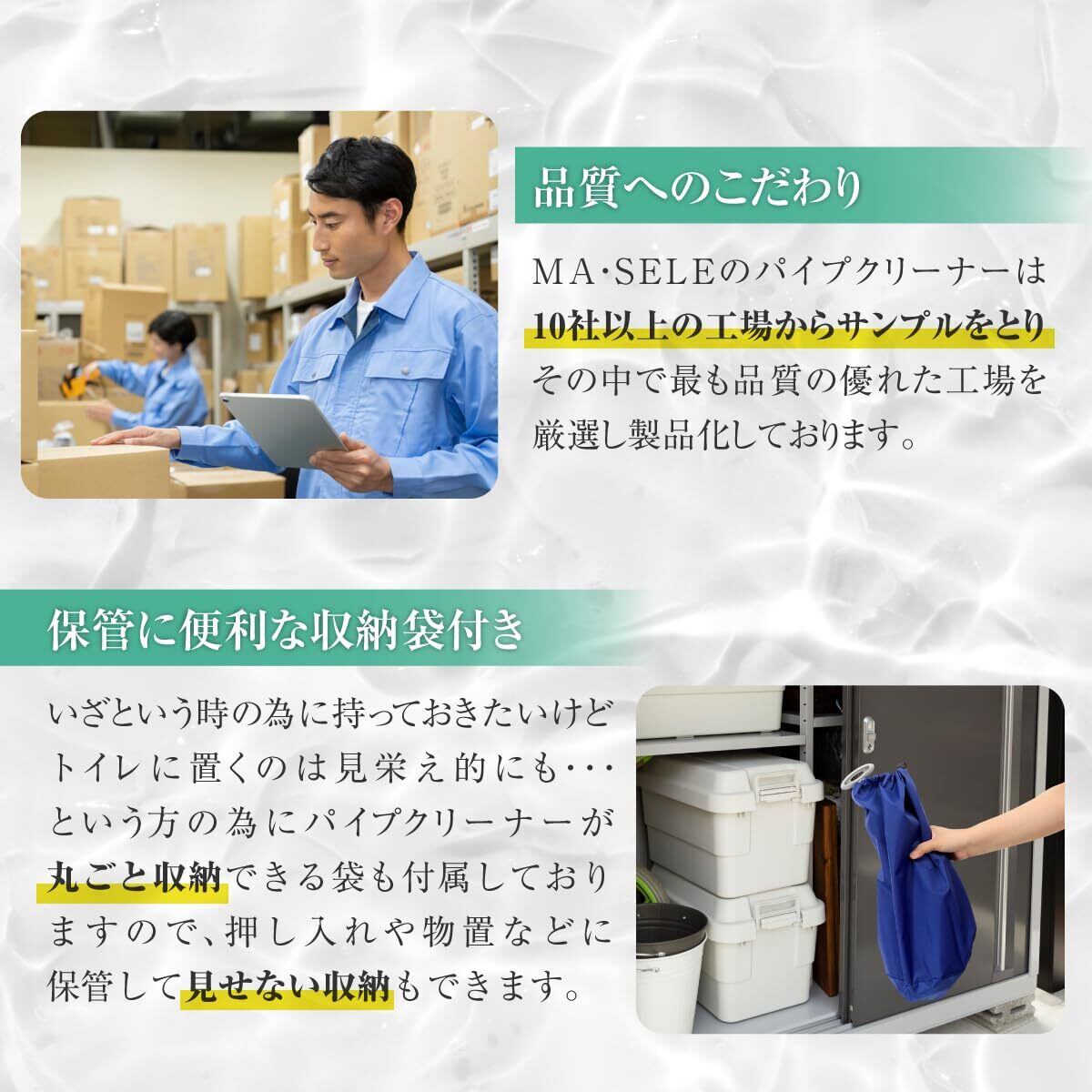 【セット内容】パイプクリーナー×1点 収納袋×1点 写真付き取り扱い説明書 【サイズ(約)】パイプクリーナー:45cm×13cm 収納袋:43cm×35cm 【カラー】グレー 【材質】ラバーカップ本体:PP素材/ステンレス素材 収納袋:ナイロン素材