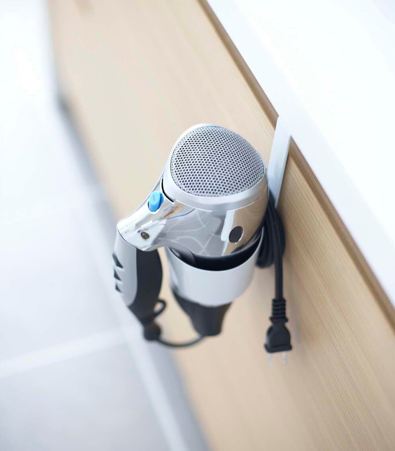 洗面台等の扉に引っ掛けてドライヤーを収納