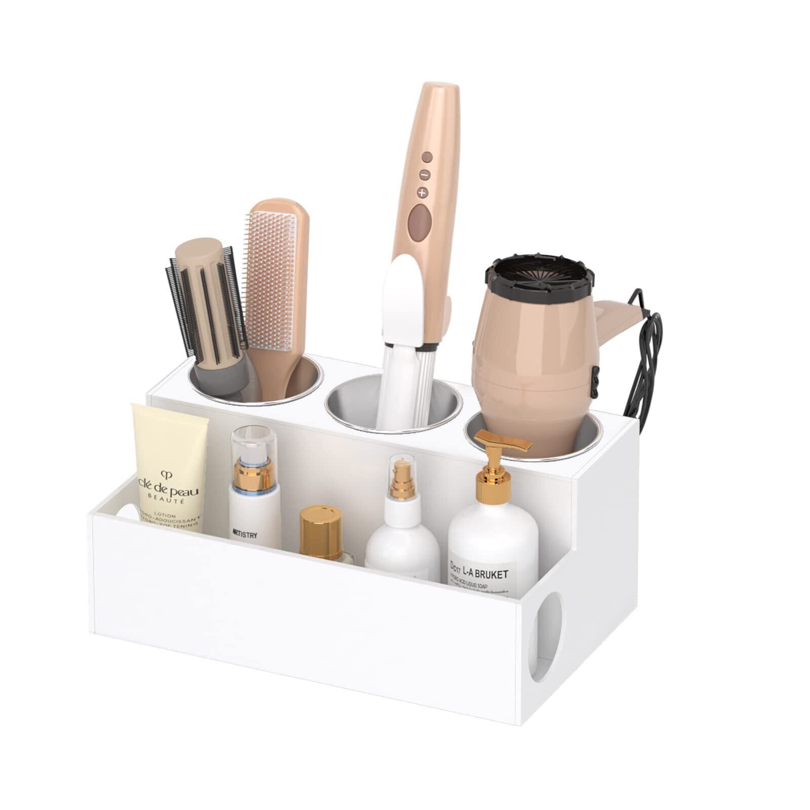 NIUBEE ドライヤーホルダー スタンド 白い 壁掛けより安全性が高い 大容量耐熱 化粧品収納ボックス ヘアアイロン ドライヤー台 浴室/洗面所/美容院/理髪店専用