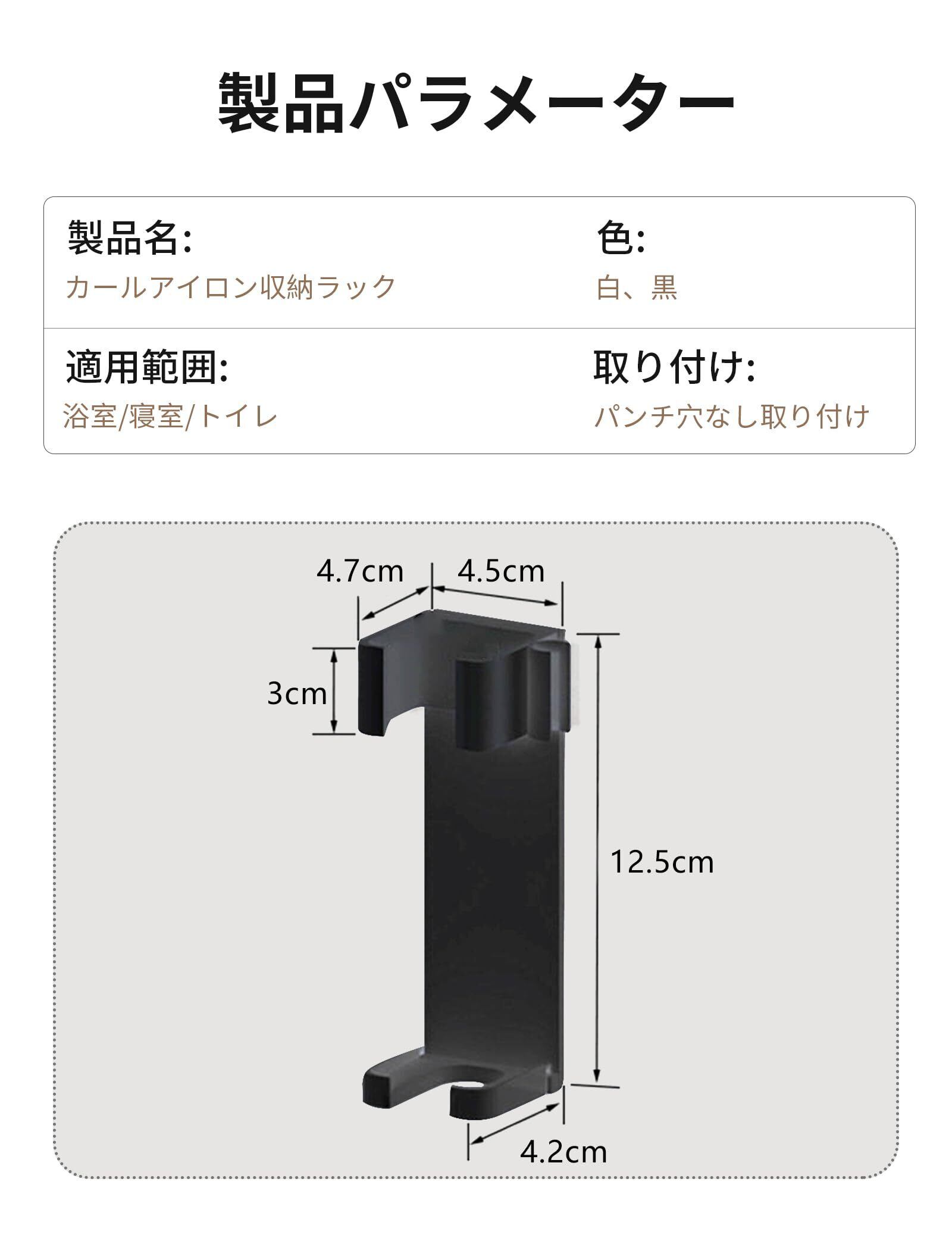 【簡単設置】穴あけ不要。 耐熱 ヘアアイロンホルダー、自己粘着性の壁取り付け、穴を開ける必要がなく、直接貼り付けるだけです。ご注意:粗すぎる表面には適していません。
