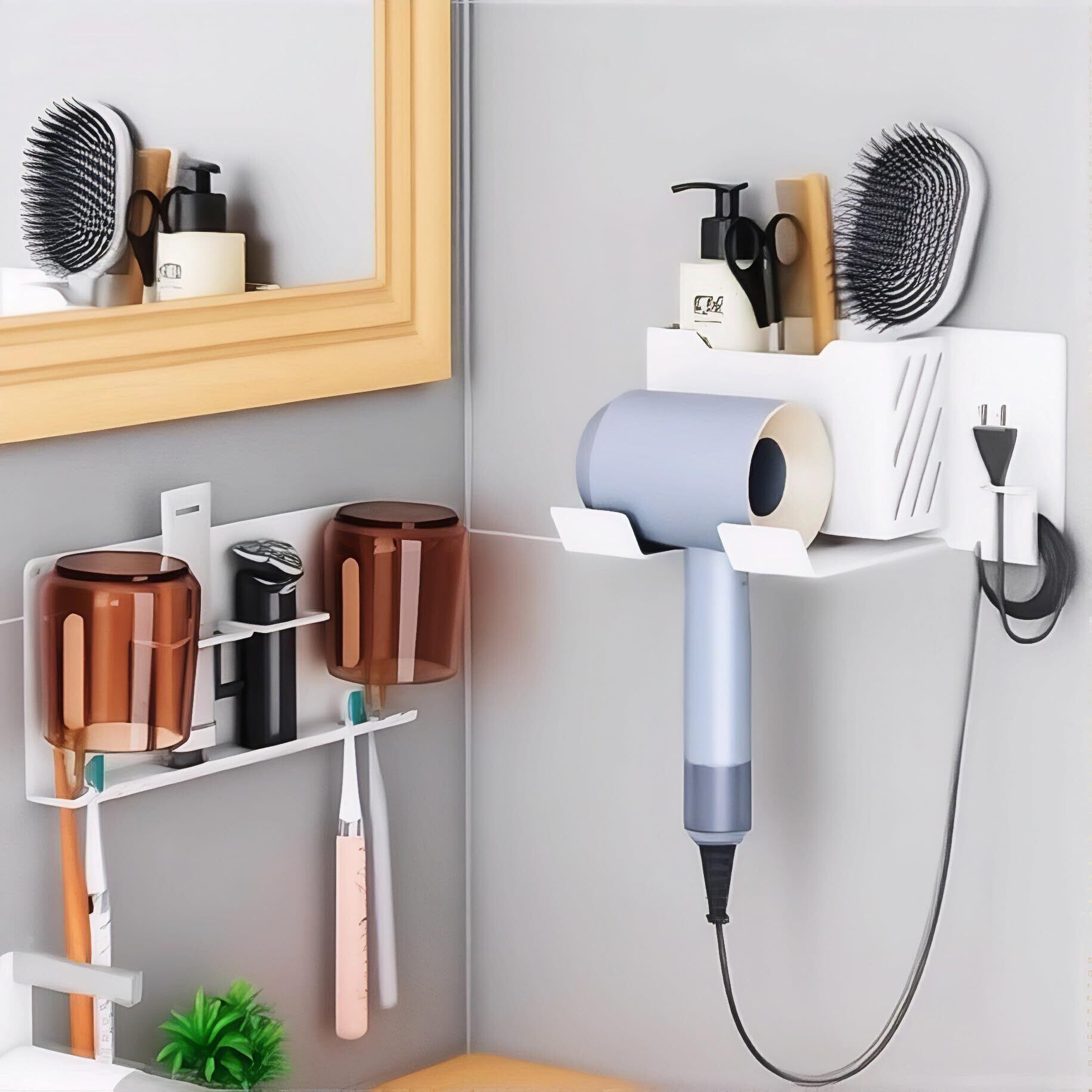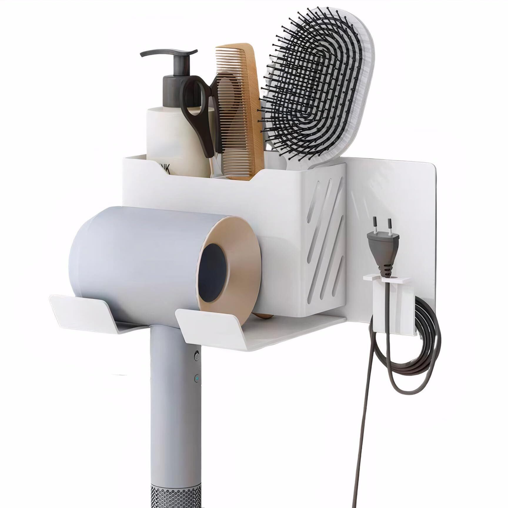 【収納スペース付き】このヘアドライヤーホルダーには、櫛、洗顔料、髭剃りや歯磨き粉なども一緒にきれいに整理できます。