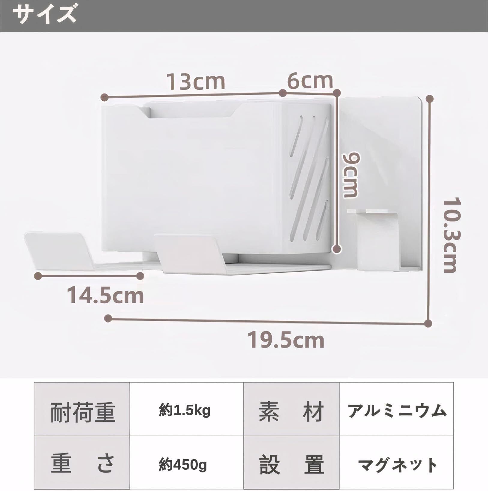 ドライヤーホルダー マグネット 壁掛けドライヤースタンド 収納スペース付き 洗面所 洗面用品 電動歯ブラシ置き アルミ 浴室収納 置物 小物入れ バス用品 ホワイト