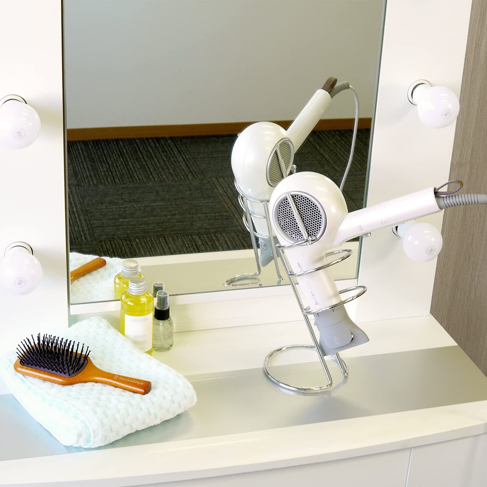 ノズルを下向きにスッキリ収納 収納の難しいドライヤーを省スペースで収納可能、どんな化粧台にも合うシルバーカラー。使いたいときにすぐ取り出せます。