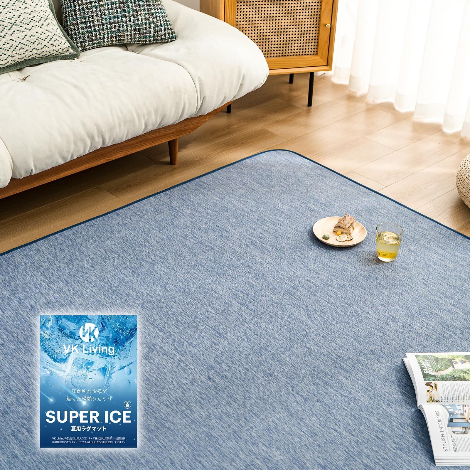 ❄️【VKSUPERICE冷感繊維】VKSUPERICE糸は冷感繊維と吸湿性・通気性に優れた繊維を組み合わせることで、足元に無数の空気の逃げ道が生まれ、触れた瞬間から冷感が広がります。敷き寝具としても使えるこのラグは、体の温度調節を科学の力でサポート。寝転んでいる間じゅう、サラサラ・ひんやりとした快適な肌触りが続きます。