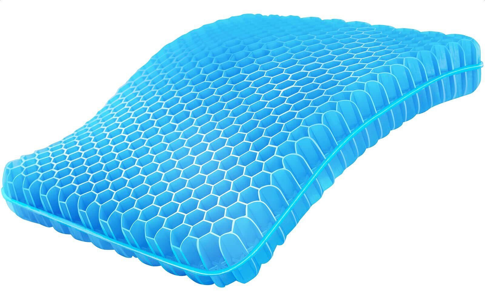 【蒸れぬゲル座布団】今話題のハニカム構造ゲルクッション、ハニカム構造が二層になっており、ゲル素材ならではのひんやり感と相まって、通気性も◎。一般的なクッションと比べてダントツに蒸れにくいゲルクッションです。