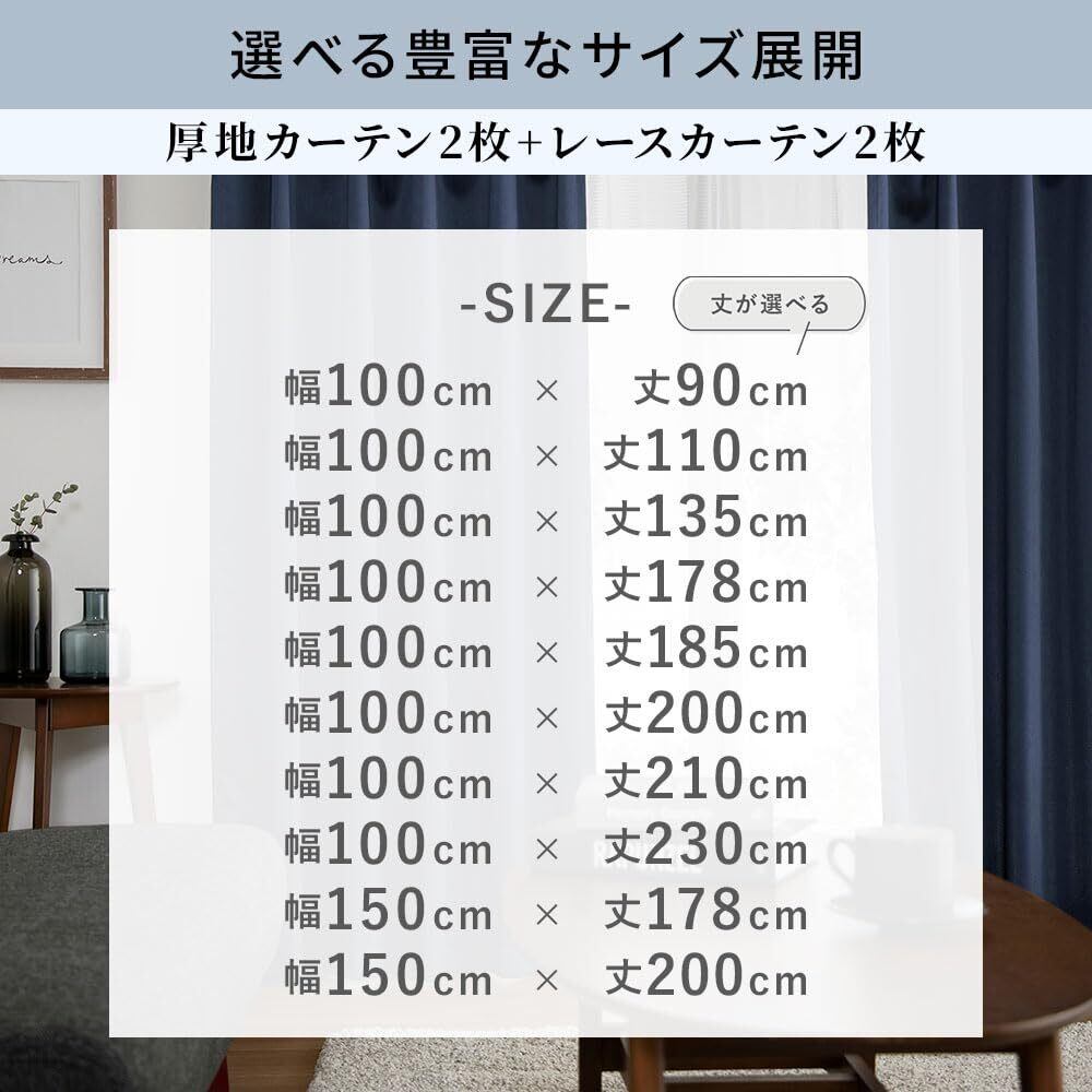 【新生活の準備に|これ1つで窓辺が完成する4枚セット】 厚地カーテン2枚とレース2枚の計4枚をセットでお届け。別々に買い揃える手間がなく、届いたその日から新しいお部屋での生活をスタートできます。統一感のあるデザインで、急なお引越しや模様替えにも最適です。