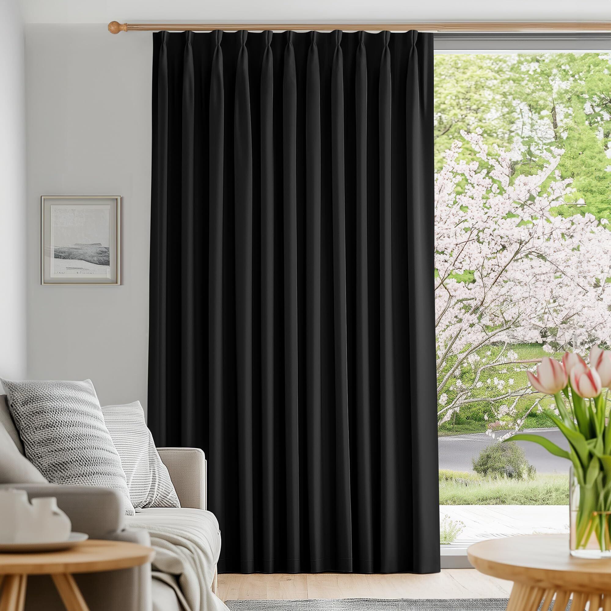 Deconovo 遮光カーテン ドレープカーテン 無地 幅130cm丈178cm ブラック 1枚入 1級遮光 おしゃれ 仕切り 幅広い 形状記憶加工 UVカット 断熱 防寒 節電対策 昼夜目隠し