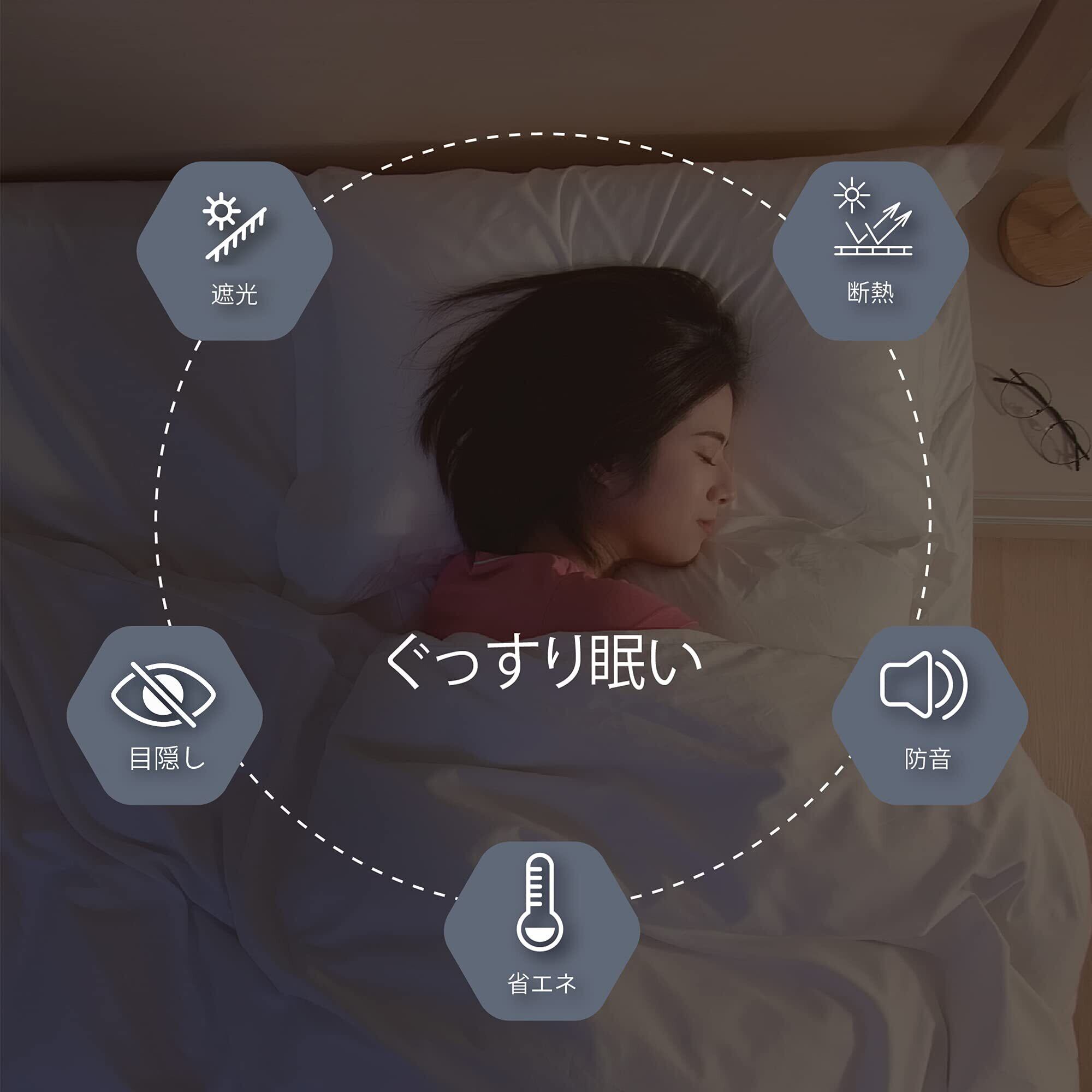 【完全遮光】 三重織りのテクノロジーにより1級遮光生地で、130cmの広いドレープカーテンの幅は普通の窓と小窓を完全に遮ることができます。日光や街灯の光をしっかり遮断して、室外陽光阻まれて、たとえ猛暑が続くても、薄暗く涼しい雰囲気を持っています。フローリングや家具の日焼け防止もおすすめです。プライバシーを確保するため部屋に間仕切ります。