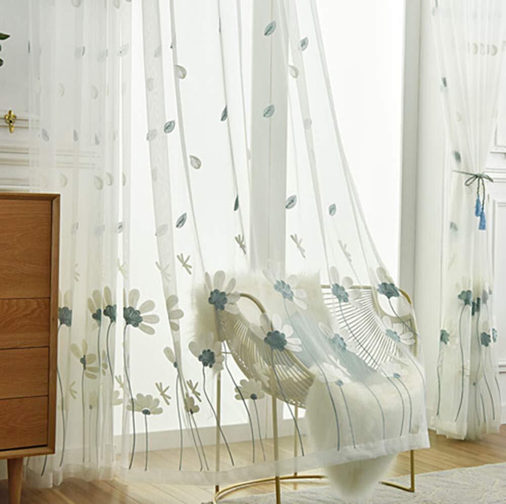 おしゃれ レースカーテン 200cm 丈 uvカット刺繍 花柄 風通し 薄手 光透過 軽い生地 窓ガーゼ 間仕切り 子供の女の子の部屋 通気性が良く 田舎風 カーテンチュール 窓飾り リビングルーム 寝室 客間 1組2枚入り ブルー 幅100cm×丈200cm