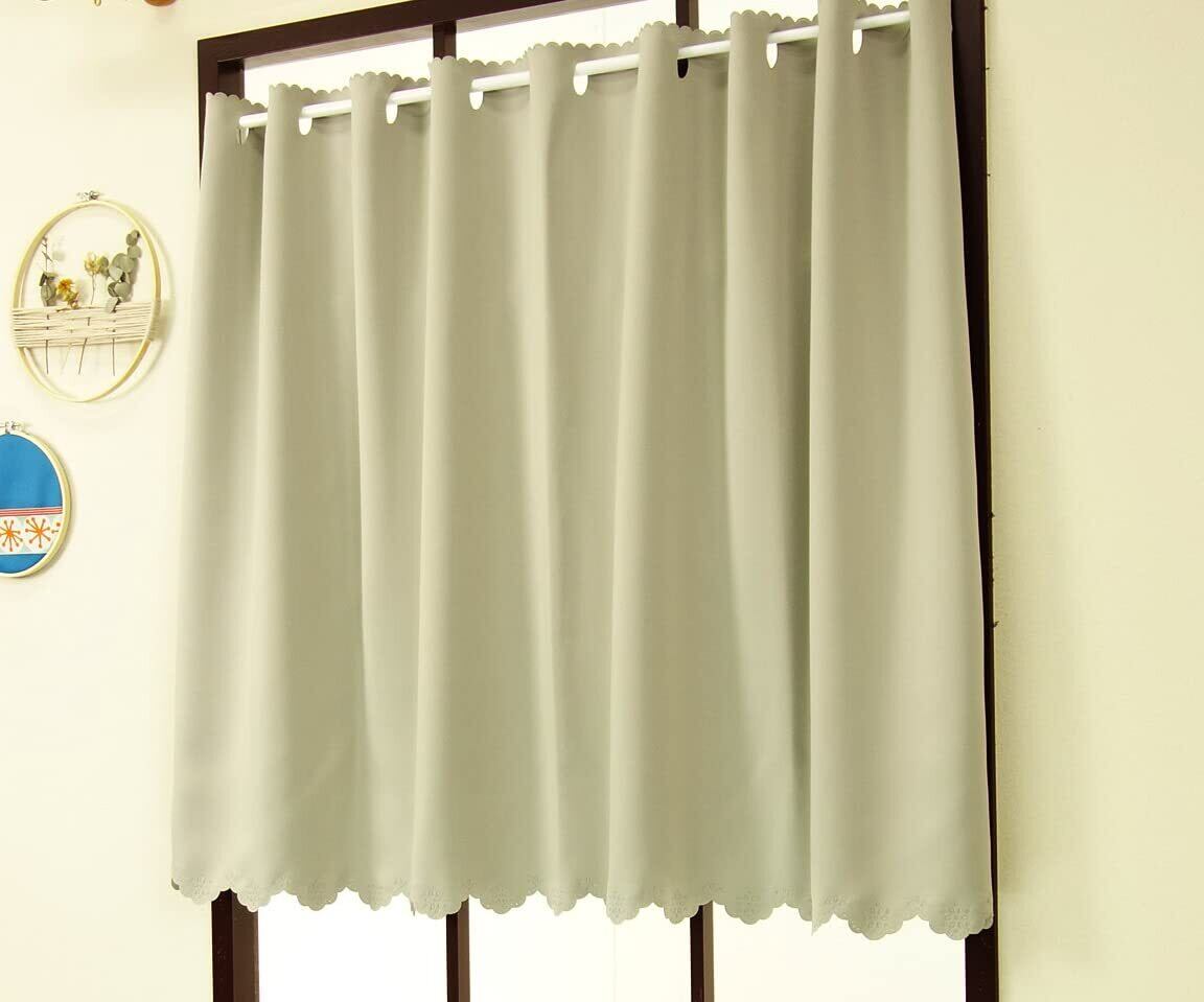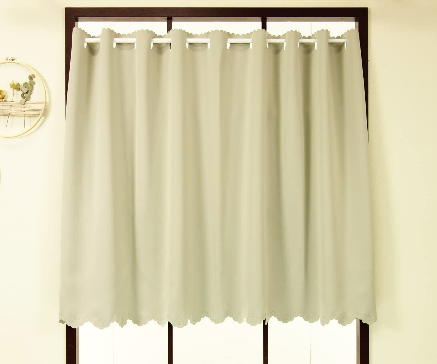 商品内容:断熱遮熱機能に優れた滑らかな触感の無地の防炎機能付きの遮光率99.99%の遮光1級カフェカーテン「ピティ」(色:ムーンライトブラウン 柄:無地) 1枚 ※ウルトラソニックウェーブ加工で裾を深めのスカラップ状にカット、上部はロッドホールと小さなウェーブ状にカット、無地でありながらもオシャレでスッキリとシンプルな仕上がりになっています。両サイドのみミシン縫製となっており、防炎ラベル等が縫い付けられています。