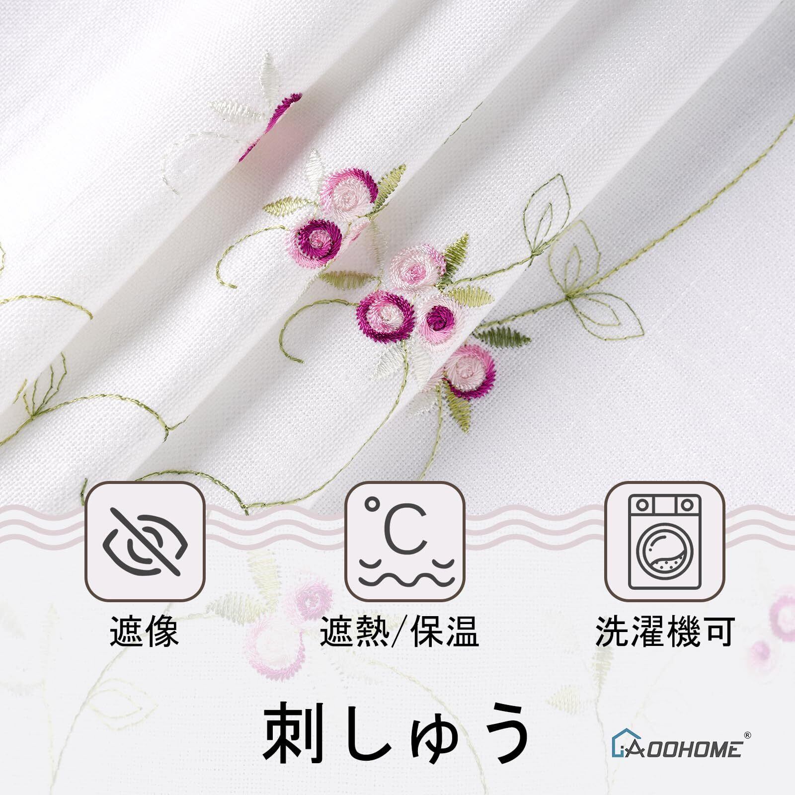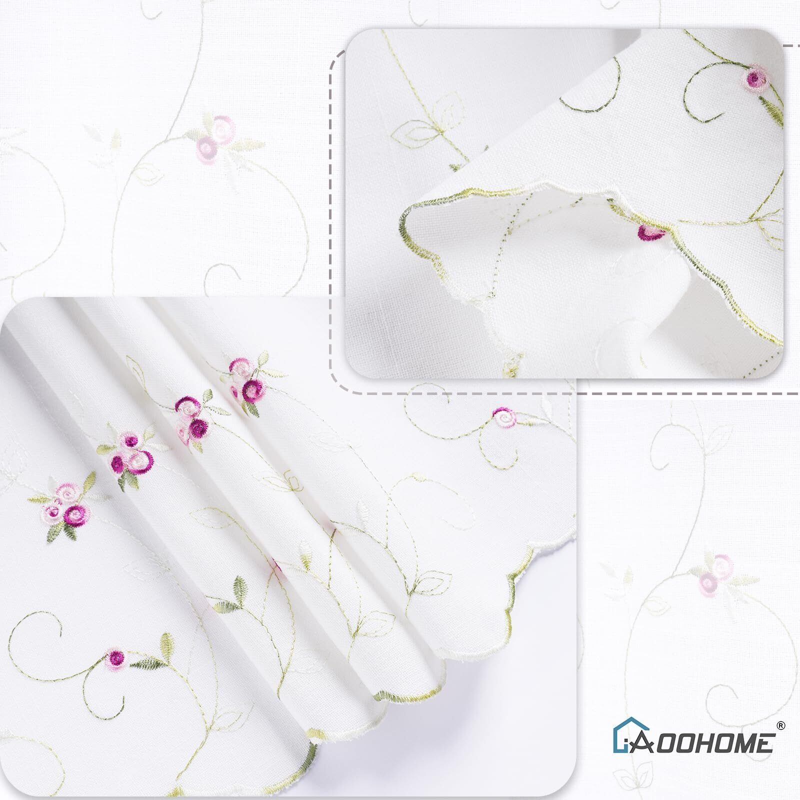 AooHome カフェカーテン 小窓 60cm丈 お風呂カーテン 目隠しカーテン 間仕切り UVカット 省エネ 通気 オシャレ 高級スラブ綿麻質感 かわいい花柄刺繍 浴室窓カーテン 取り付け簡単