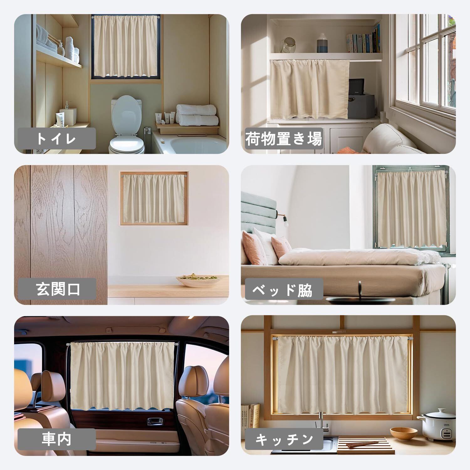 遮光 カフェカーテン 45cm丈 小窓用 遮熱 断熱 無地 目隠し 出窓 UVカット ベージュ 保温 防寒 丈45㎝ⅹ幅65㎝ 1枚入