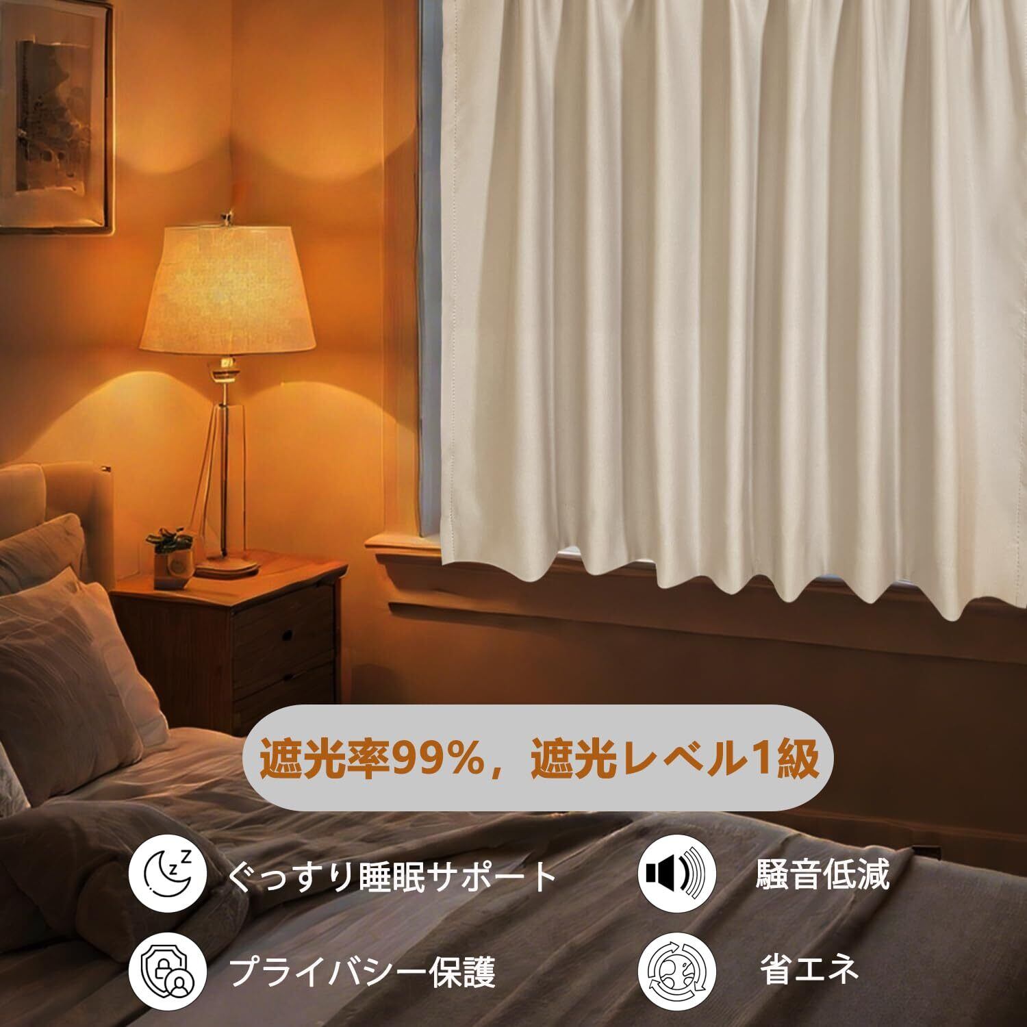 【優れた遮光性能】遮光カフェカーテンは黒色高密度糸を採用し、光を99%以上カット。昼間でも完全な暗室環境を実現する小窓用カーテンです。昼寝や映画鑑賞用に加え、夏の日差しによる室温上昇を抑える遮熱機能も備えています。