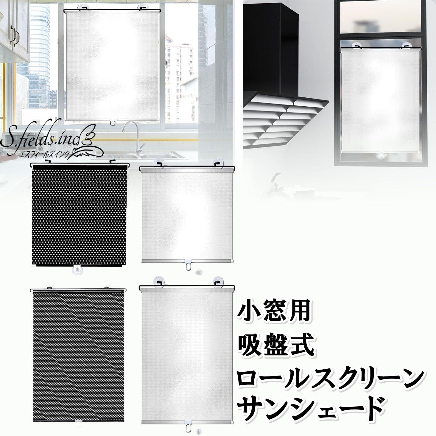 S.fields.inc ロールスクリーン 吸盤式 日除け サンシェード 遮光カーテン ブラインド 40cm 窓 車 (40*60cm,シルバー)