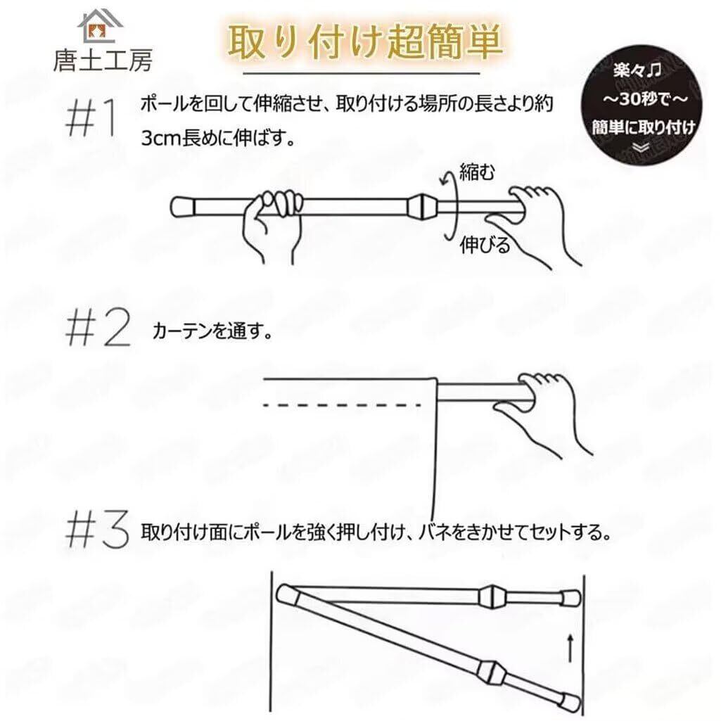 【取り付け超簡単!】:穴がありますので、突っ張り棒をご使用になればどんな窓にも簡単に取り付けられます。※突っ張り棒は別売りです。