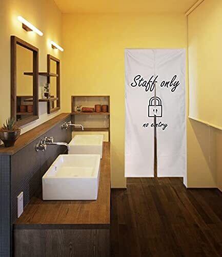 next.design のれん ロング丈 180cm 脱衣所 風呂 トイレ スタッフルーム スタッフオンリー 関係者以外立入禁止 暖簾 垂れ幕 (スタッフルーム(白))