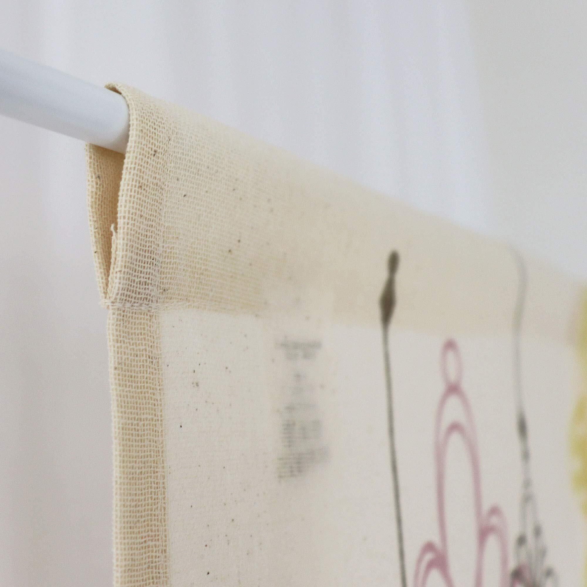 デザイン特徴: 綿100%の生地にクロッシェ柄がプリントされたかわいいのれんで、少し張り感を与え仕上げました。