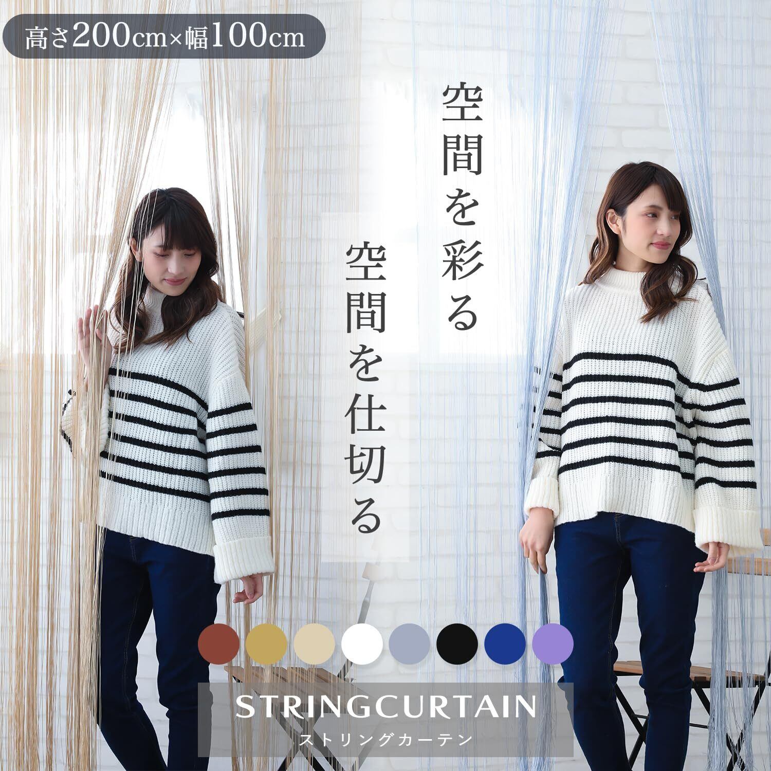 【数量限定】ストリングカーテン 間仕切り 紐のれん 洋風すだれ フリンジ 暖簾 高さ200cm×横100cm おしゃれ インテリア タペストリー (ブラウン, 通常)