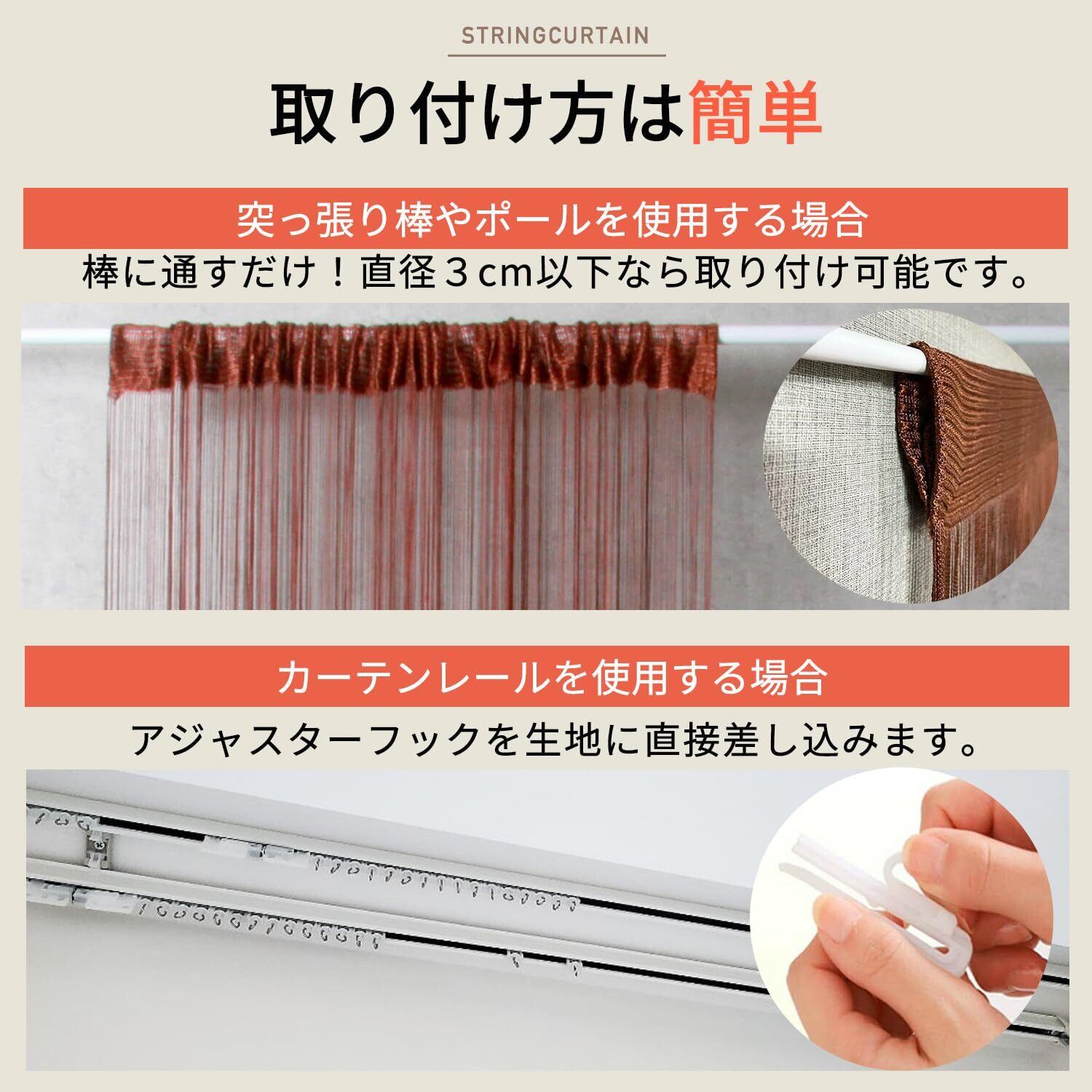 ストリングカーテン 間仕切り 紐のれん 洋風すだれ フリンジ 暖簾 高さ200cm×横100cm おしゃれ インテリア タペストリー (ブラウン, 通常)
