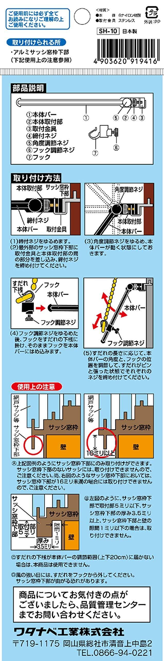 ワタナベ工業 すだれ フック ゆれ止め サッシ 取り付け 金具 小 ブラック SH-10