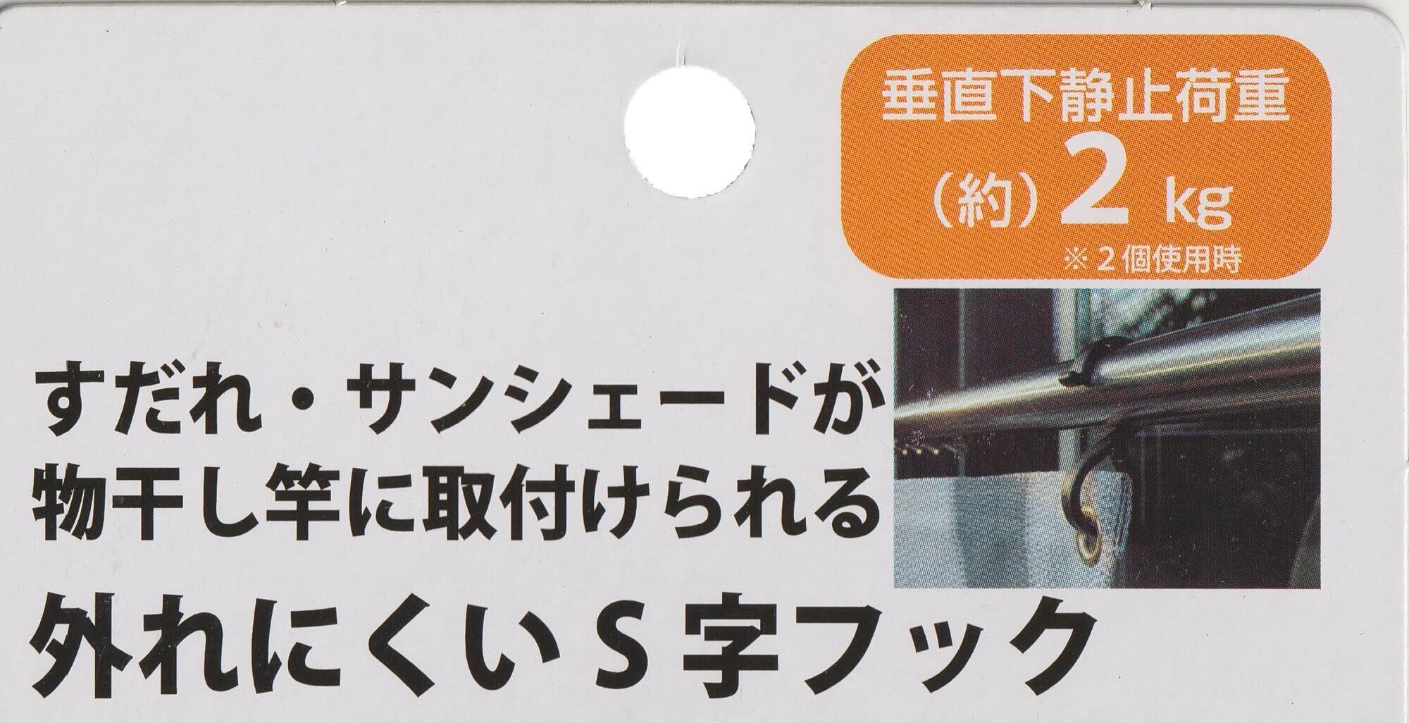 水勘製簾所 外れにくい S字フック 2個入り すだれ・サンシェード用 垂直下静止荷重 約2㎏/組